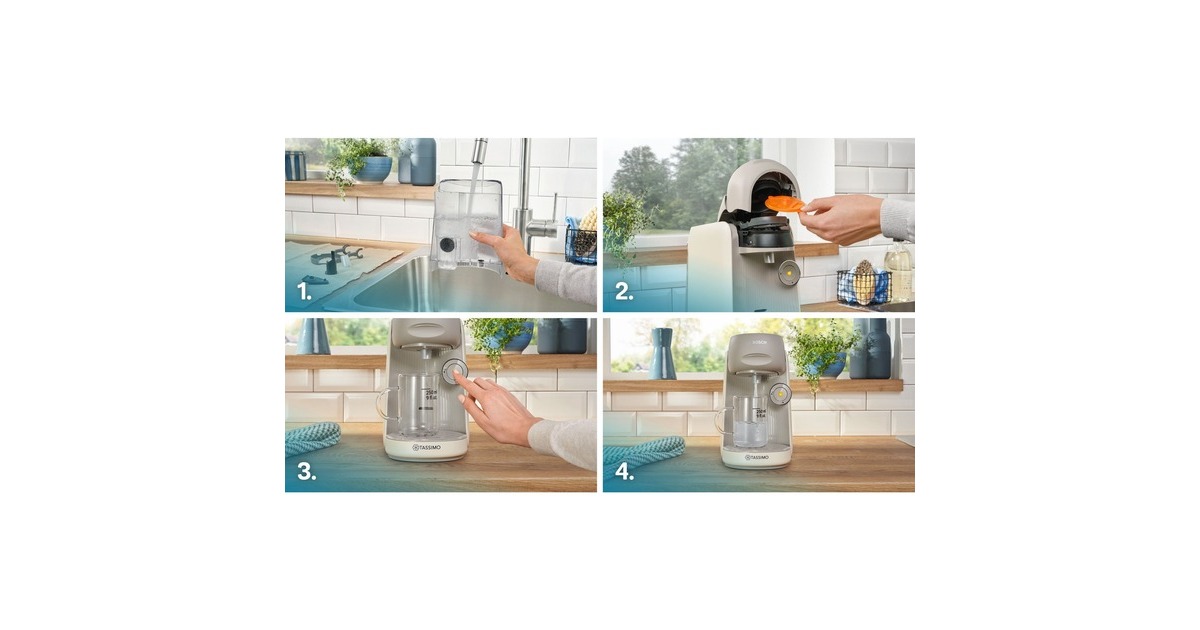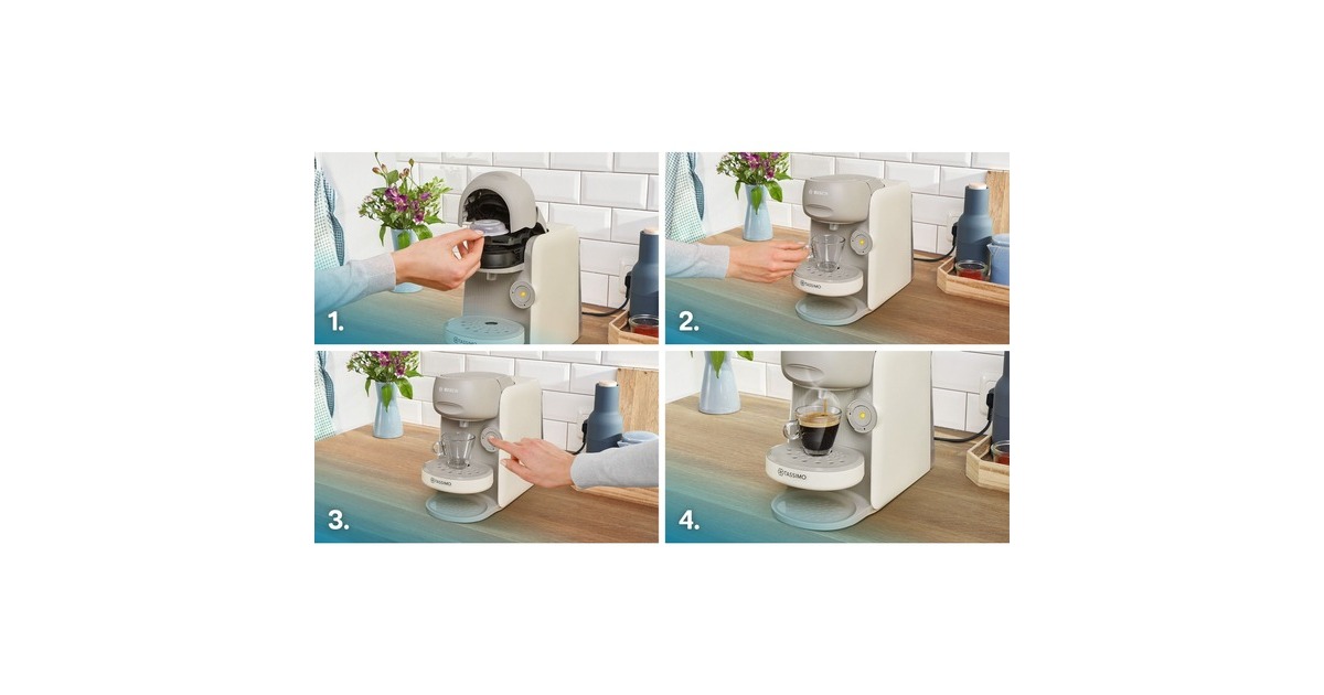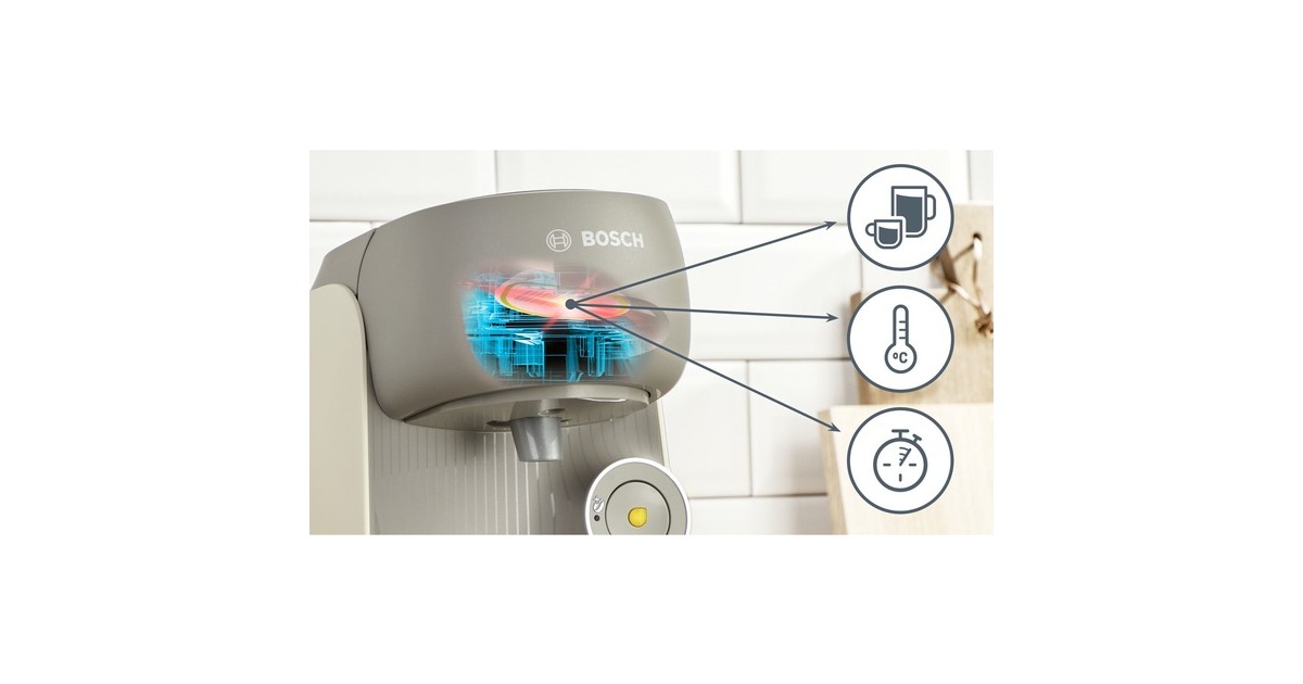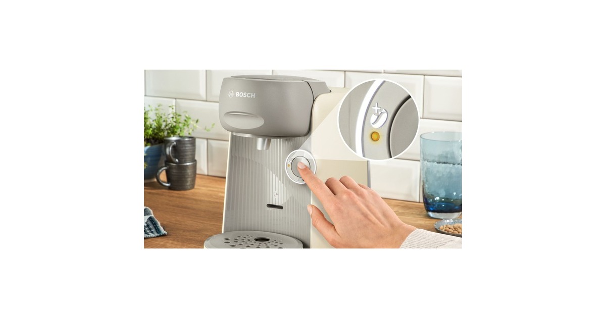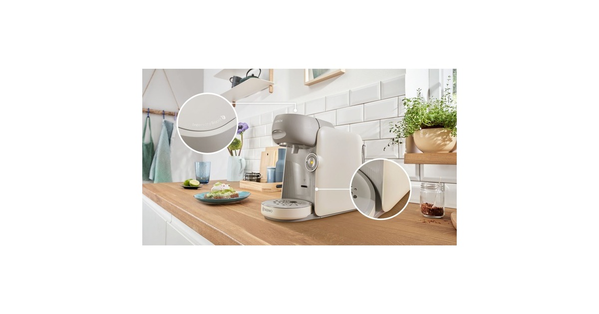 Das Bosch Multigetränkesystem Tassimo Finesse TAS16B7 besticht durch seine bunte Farbgebung. Über die vollautomatische Ein-Knopf-Bedienung lässt sich die Tassimo Happy bietet eine große Getränkevielfalt mit über 70 Spezialitäten wie Espresso, Caffè Crema, Filterkaffee, Latte Macchiato, Cappuccino, heiße Kakao-Spezialitäten und Tee. Perfekte Getränkequalität dank INTELLIBREW: Dank der patentierten Barcode-Technologie wird jedes Getränk mit der richtigen Wassermenge, Temperatur und Brühzeit perfekt zubereitet. Das TASSIMO-Gerät liest den jeweiligen Barcode und brüht so das perfekte Getränk. Die IntensityBoost Funktion bietet die Möglichkeit beim längeren Drücken auf den Knopf einen Kaffee mit intensiverem Aroma zu erhalten. Der automatische Dampfstoß zur Reinigung nach jeder Getränkezubereitung verhindert die Geschmacksübertragung zwischen den verschiedenen Getränken.Art.-Nr.: 1877001