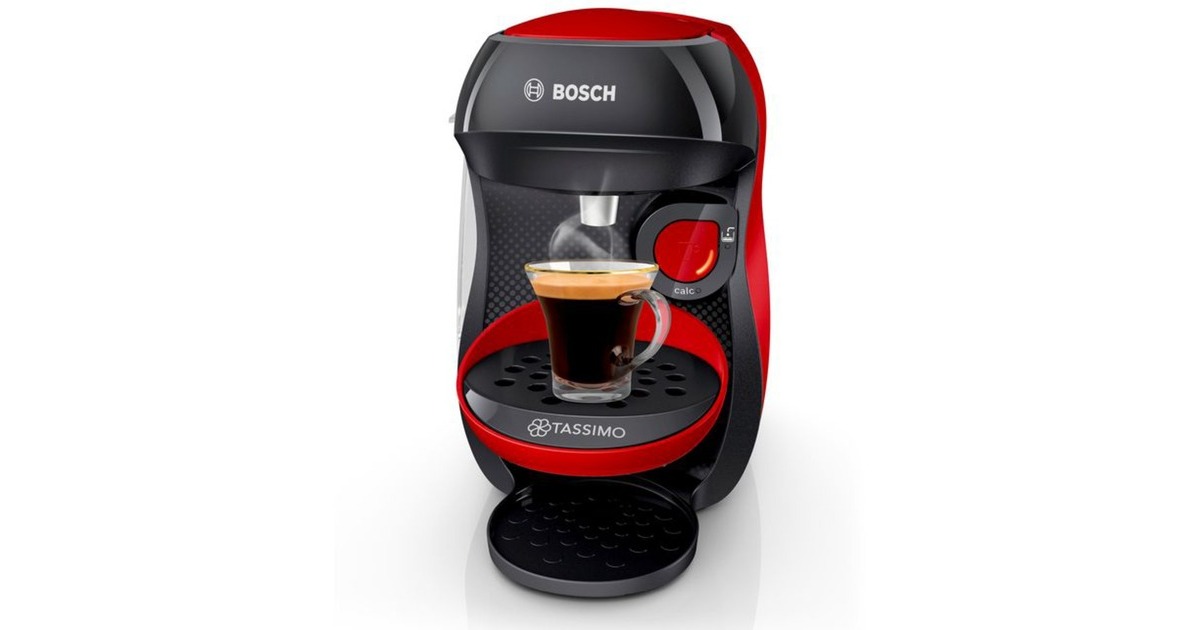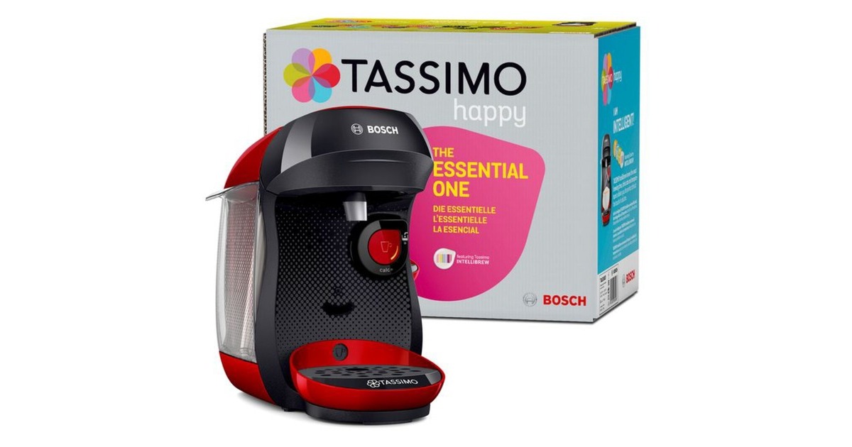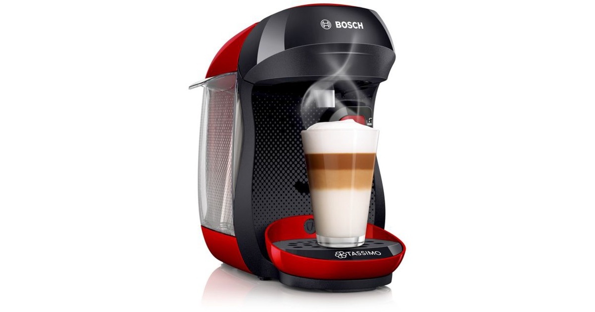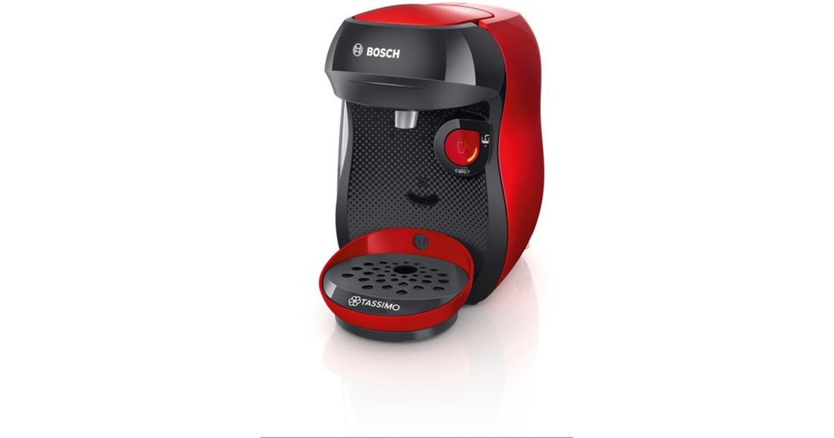 Das kompakte Bosch Multigetränkesystem Tassimo Happy TAS1003 besticht durch seine bunte Farbgebung. Über die vollautomatische Ein-Knopf-Bedienung lässt sich die Tassimo Happy einfach bedienen und das intuitive LED-Bedienfeld informiert über den jeweiligen Gerätezustand und zeigt an, wenn das Nachfüllen von Wasser, das Wechseln des Filters oder Entkalken notwendig ist. Mit der patentierten INTELLIBREW-Technologie - einer intelligenten Getränkeerkennung per Barcode - wird jedes Getränk mit der richtigen Wassermenge, Temperatur und Brühzeit perfekt zubereitet. Dank des Heizsystems ist die Tassimo Happy direkt nach Einschalten der Maschine einsatzbereit und durch die komfortable Selbstabschaltung nach jedem Brühvorgang sowie dem echten Ein-/Ausschalter hat sie zudem einen geringen Energieverbrauch.Art.-Nr.: 1497612