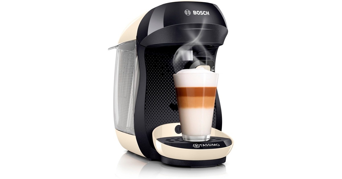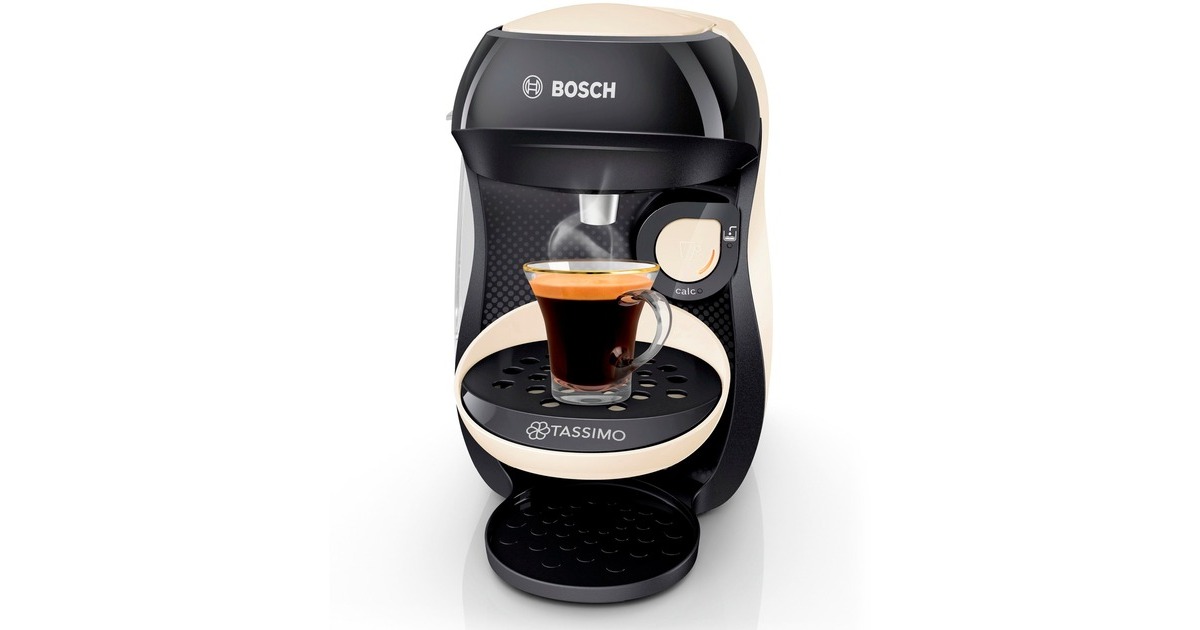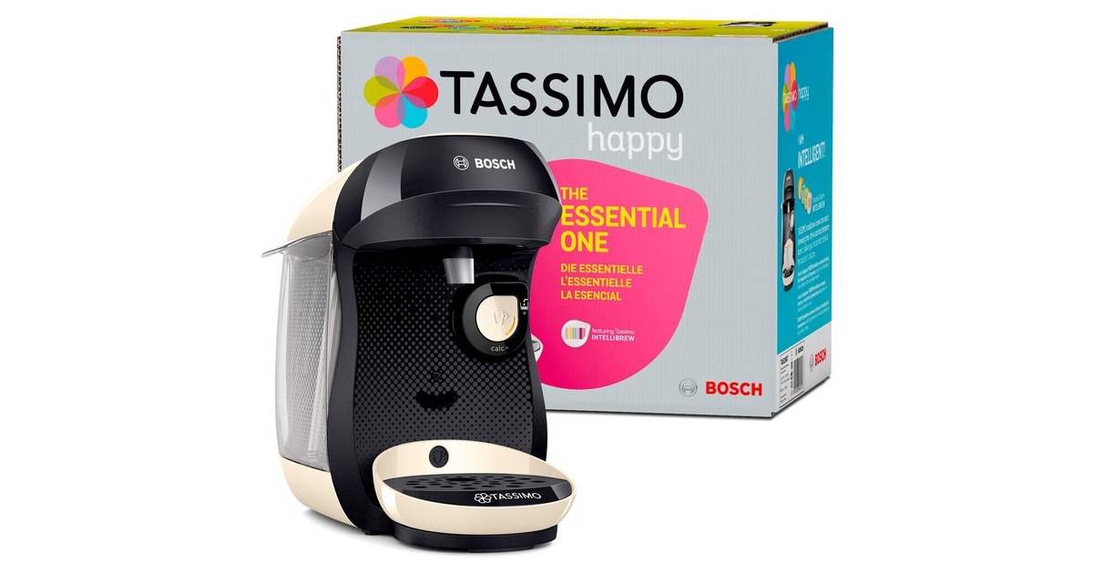Das kompakte Bosch Multigetränkesystem Tassimo Happy TAS1007 besticht durch seine bunte Farbgebung. Über die vollautomatische Ein-Knopf-Bedienung lässt sich die Tassimo Happy einfach bedienen und das intuitive LED-Bedienfeld informiert über den jeweiligen Gerätezustand und zeigt an, wenn das Nachfüllen von Wasser, das Wechseln des Filters oder Entkalken notwendig ist. Mit der patentierten INTELLIBREW-Technologie - einer intelligenten Getränkeerkennung per Barcode - wird jedes Getränk mit der richtigen Wassermenge, Temperatur und Brühzeit perfekt zubereitet. Dank des Heizsystems ist die Tassimo Happy direkt nach Einschalten der Maschine einsatzbereit und durch die komfortable Selbstabschaltung nach jedem Brühvorgang sowie dem echten Ein-/Ausschalter hat sie zudem einen geringen Energieverbrauch.Art.-Nr.: 1497611