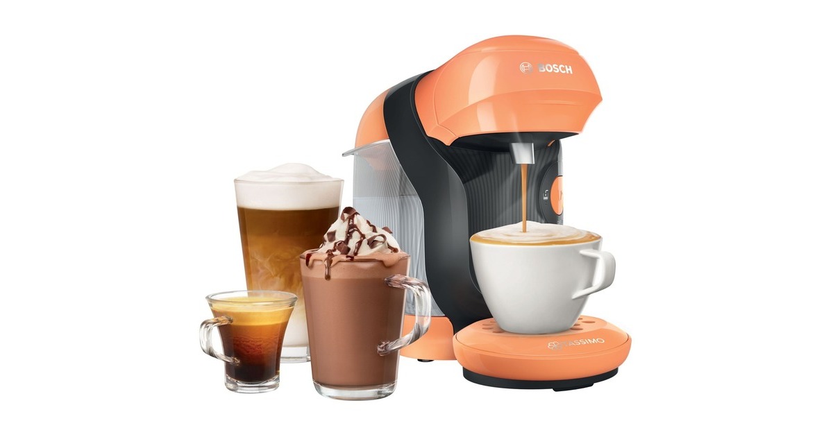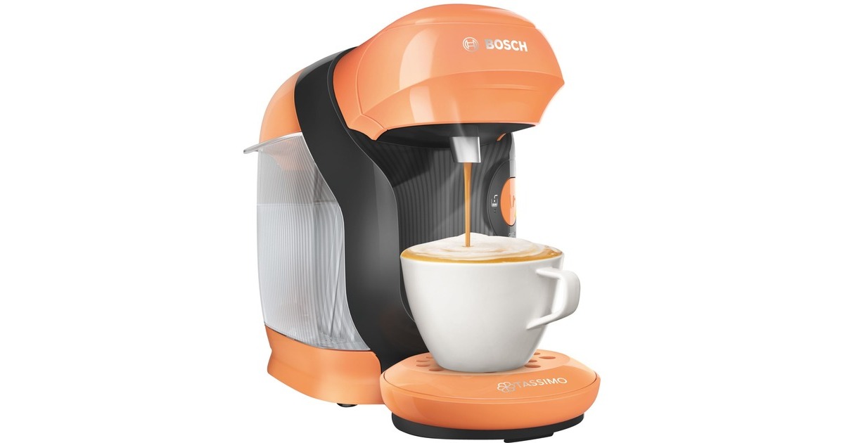 Das kompakte Bosch Multigetränkesystem Tassimo Style TAS1106 besticht durch sein zeitlos modernes Design und spart zudem Platz. Über die vollautomatische Ein-Knopf-Bedienung lässt sich die Tassimo Style einfach bedienen und das intuitive LED-Bedienfeld informiert über den jeweiligen Gerätezustand und zeigt an, wenn das Nachfüllen von Wasser oder Entkalken notwendig ist. Mit der patentierten INTELLIBREW-Technologie - einer intelligenten Getränkeerkennung per Barcode - wird jedes Getränk mit der richtigen Wassermenge, Temperatur und Brühzeit perfekt zubereitet. Dank des Heizsystems ist die Tassimo Style direkt nach Einschalten der Maschine einsatzbereit und durch die komfortable Selbstabschaltung nach jedem Brühvorgang hat sie zudem einen geringen Energieverbrauch.Art.-Nr.: 1674315
