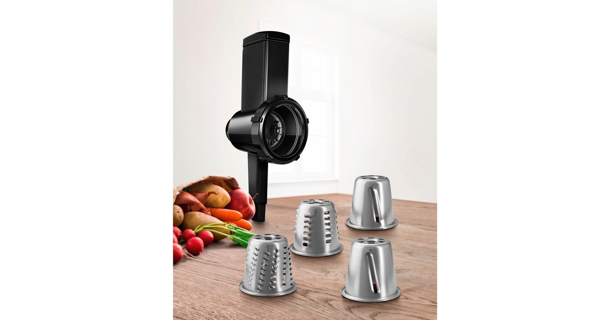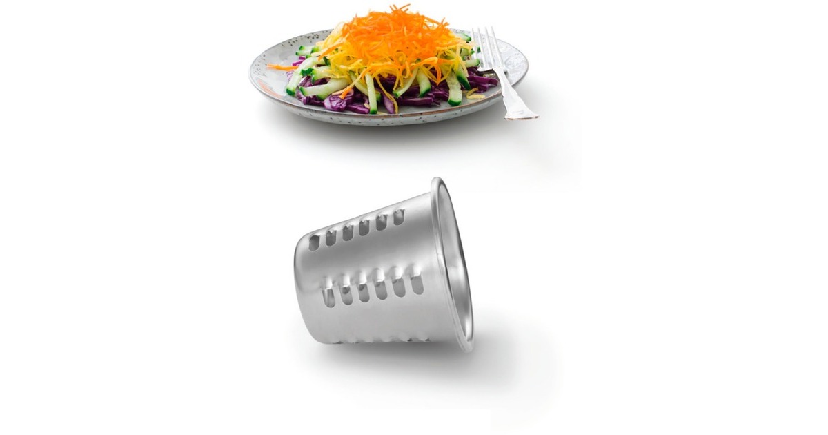 Der Trommelschnitzler / Raspelvorsatz MUZ9RV1 für die Bosch OptiMUM Küchenmaschine ist sehr vielseitig. Mit den vier verschiedenen Trommeln lässt sich Gemüse und Obst schneiden oder Käse und Nüsse raspeln und reiben. Die Edelstahl Trommeln sind geschmacksneutral und einfach in der Spülmaschine zu reinigen.Art.-Nr.: 1496825