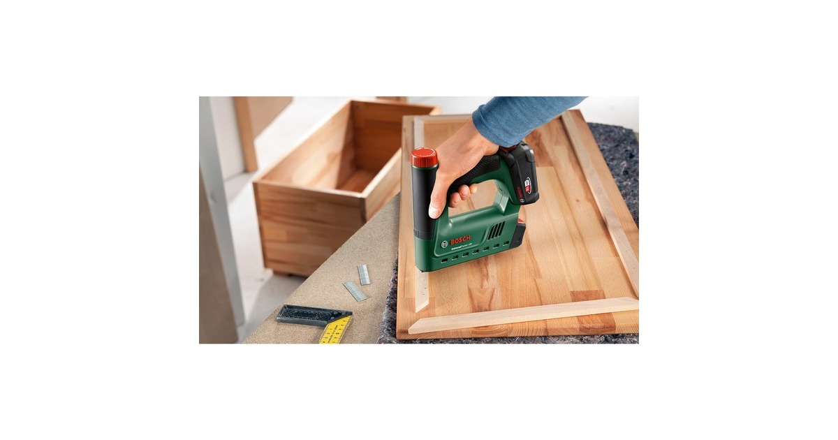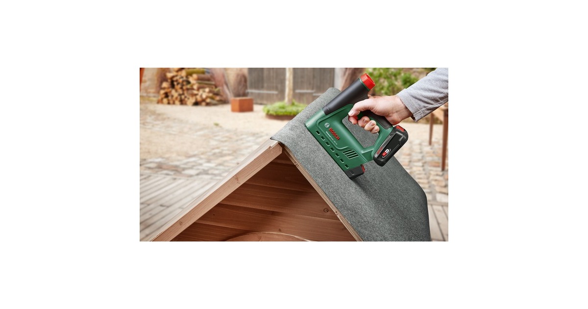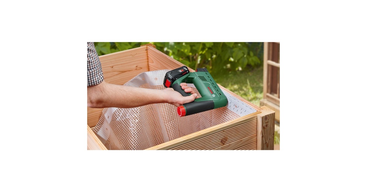 Der UniversalTacker 18V-14 eignet sich zum Heften, Nageln und Klammern von Stoffen, Leder, Papier, Pappe, Folien, Isoliermaterial und ähnliches auf Hart- und Weichholz oder holzähnliches Material. Der ergonomische Tacker bietet höchsten Komfort und optimale Vielseitigkeit bei den unterschiedlichsten DIY-Projekten. Das benutzerfreundliche Push + Release System sorgt für zusätzliche Sicherheit und optimale Ergebnisse. Die mit der beweglichen Tackernase gekoppelte Auslösesperre verhindert eine unbeabsichtigte Schussauslösung bei versehentlich gedrücktem Auslöser. Bei der Arbeit mit unterschiedlichen Materialien und Klammerlängen kann die benötigte Schlagkraft mit dem Stellrad in acht Stufen vorgewählt werden. Für eine schnelle Befestigung, zum Beispiel beim Auskleiden von Hochbeeten, kann der Schnellfeuermodus aktiviert werden, der bis zu 30 Schüsse pro Minute liefert. Mit der praktischen Klammerfüllstandsanzeige sieht man auf den ersten Blick, ob der Tacker nachgefüllt werden muss. Der Syneon Chip steuert dabei den Energieverbrauch, stellt bei anspruchsvollen Anwendungen die optimale Leistung zur Verfügung und ermöglicht maximale Laufzeit bei weniger intensiven Arbeiten. Der UniversalTacker 18V-14 ist Teil des 18V POWER FOR ALL-Systems. Ein einziger Akku kann für alle 18V POWER FOR ALL-Werkzeuge, auch von anderen Herstellern, verwendet werden. Art.-Nr.: 1908598