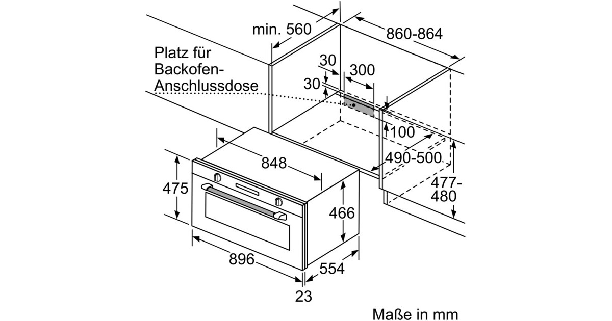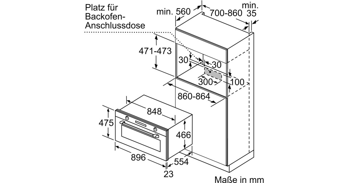 min. 860 mm, max. 864 mm |