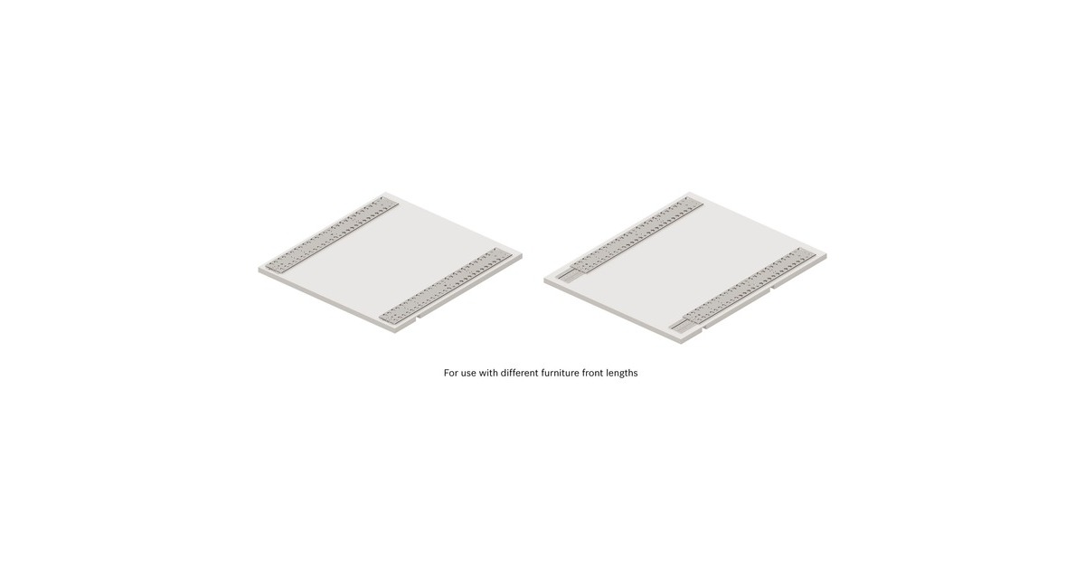 Zweiteilige Metallschienen ausverzinktem Stahl; variabel einsetzbar für Korpushöhen von 65,5 cm bis 81,5 cm |
