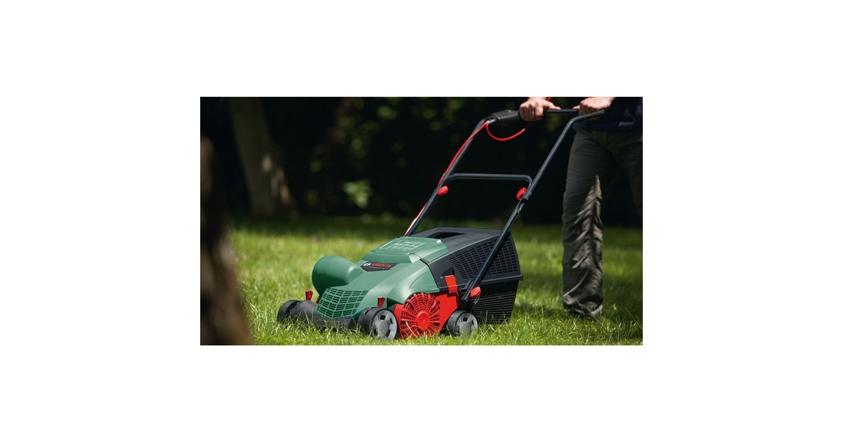 Der vielseitige Rasenlüfter UniversalVerticut 1100 von Bosch liefert exzellente Ergebnisse mit 14 rotierenden Kohlenstoffstahlmessern für schnelles Einschneiden der Oberfläche und effektive Moos- und Rasenfilzentfernung, während das Jet-Collect-System für vollständiges Füllen der großvolumigen Fangbox sorgt. Die 4-fache Arbeitshöhenverstellung ermöglicht eine leichte Anpassung an einfache und schwierige Anwendungen, oder zum Laubsammeln. Die zweifach klappbaren Holme und die zusammenfaltbare Fangbox sorgen für eine Gesamthöhe von nur 40cm für eine platzsparende Lagerung.Art.-Nr.: 1827819