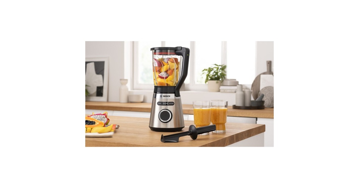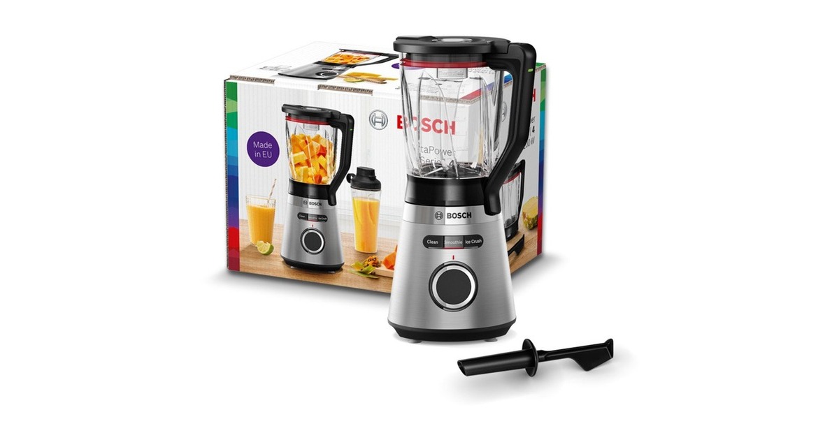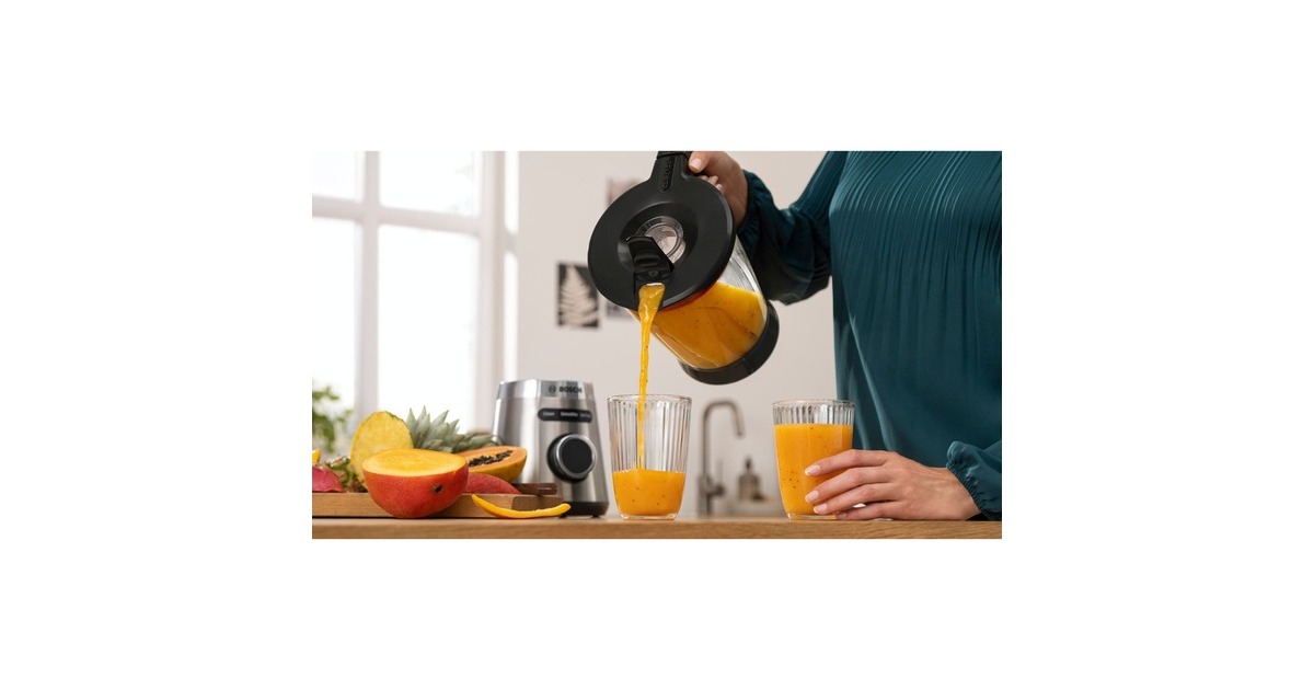 Der Bosch Standmixer VitaPower MMB6382MN mit langlebigem ThermoSafe Glasbehälter und Sicherheitsdeckel mixt perfekte Smoothies