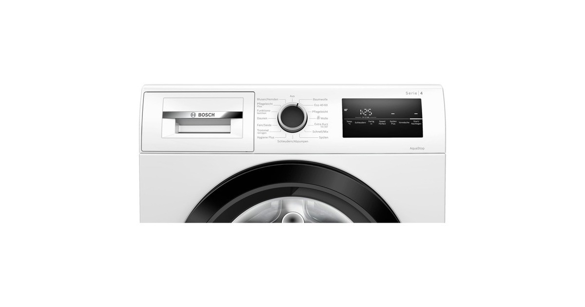 Die Waschmaschine Bosch WAN28K43 eignet sich mit einem Fassungsvermögen von 8 kg optimal für eine größere Familie. Mit zahlreichen Waschprogrammen bleiben keine Wünsche offen. Die Bedienung der WAN28K43 ist dank LED Display mit einfacher Touch-Control Bedienung und der vollelektronischen Einknopfbedienung kinderleicht. SpeedPerfect sorgt für perfekt saubere Wäsche in bis zu 65% weniger Zeit. Mit ActiveWater Plus können auch kleine Wäschemengen sparsam gewaschen werden, da der Wasserverbrauch jedes Waschgangs durch die automatische Beladungserkennung präzise der Beladung angepasst wird. Dank Nachlegefunktion können vergessene Kleidungsstücke zu fast jeder Zeit nachgelegt werden. Die VarioTrommel ermöglicht schonendes und effizientes Waschen dank einer einzigartigen Trommel-Struktur. Auch in puncto Sicherheit glänzt die WAN28K43 mit einem AquaStop, Schaumerkennung und einer Unwuchtkontrolle. Mit dem EcoSilence Drive Motor ist die WAN28K43 extrem energiesparend und leise im Betrieb bei besonders hoher Lebensdauer. Art.-Nr.: 1867163