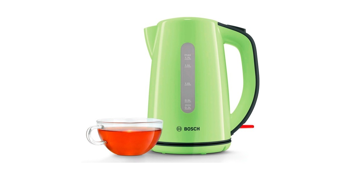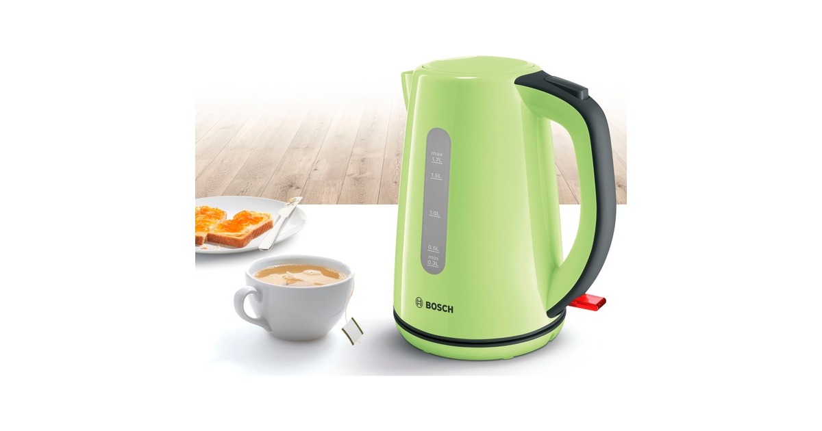 Der Wasserkocher Bosch TWK7506 kann bis zu 1,7 Liter Wasser aufnehmen, ist aber auch für kleine Mengen ab einer Tasse (0,3 l) geeignet. Praktisch ist zudem das verdecktes Heizelement, das die Reinigung erleichtert. Dank des 360 Grad-Anschluss-Sockel kann der TWK7506 in jeder Postion aufgestellt und in Betrieb genommen werden. Durch die 2200 Watt Leistung lässt sich Wasser in kürzester Zeit erhitzen.Art.-Nr.: 1359742