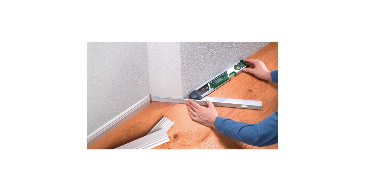 Der digitale Winkelmesser PAM 220 von Bosch erlaubt das schnelle und einfache Messen, Berechnen und Übertragen von Winkeln. Der praktische Schenkelauszug auf bis zu 35cm erlaubt das Messen von Ergänzungswinkeln auch an schwer erreichbaren Ecken, das ist gerade beim Verlegen von Bodenbelägen und Fliesen ideal. Die integrierten Messfunktionen helfen bei der Berechnung einfacher und doppelter Gehrungswinkel, zur präzisen Einstellung von Kapp- und Gehrungssägen auf die benötigten Winkel. Das ist sehr hilfreich beim Anbringen von Fuß- oder Zierleisten. Zwei integrierte Libellen erlauben das manuelle horizontale und vertikale Nivellieren sowie das Ausrichten per Wasserwaage auf einen Blick.Art.-Nr.: 1825414