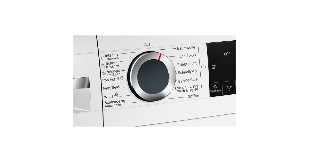 Alle gängigen Waschprogramme können wahlweise auch als reines Trockenprogramm oder als kombiniertes Wasch- und Trockenprogramm genutzt werden; Trocknen-Option für die meisten Waschprogramme |