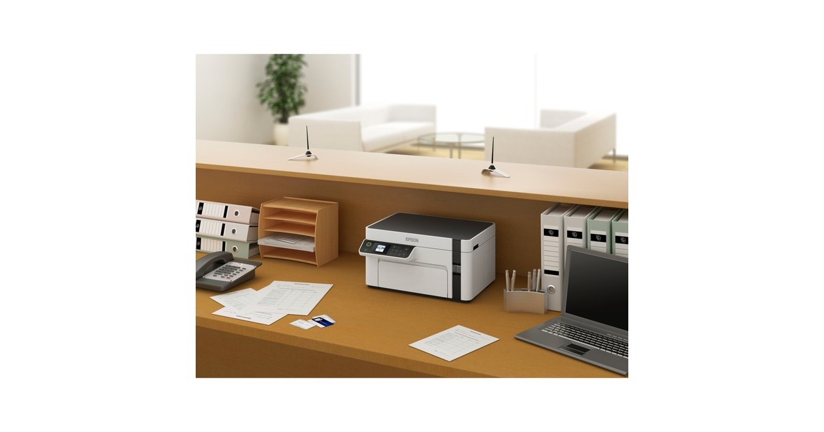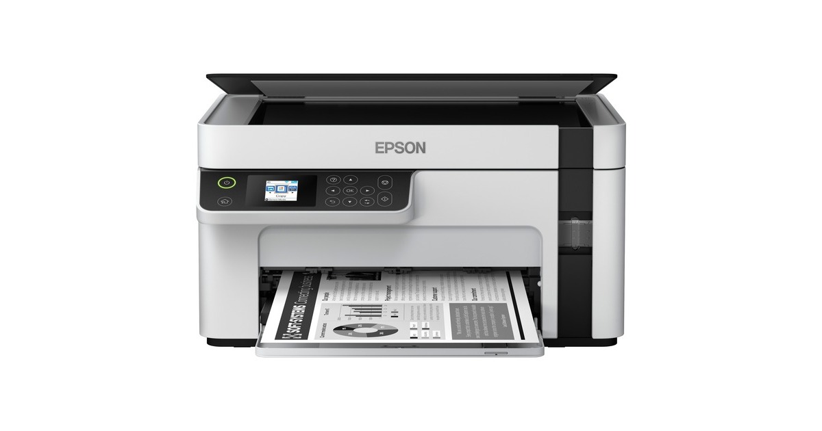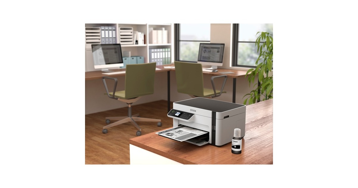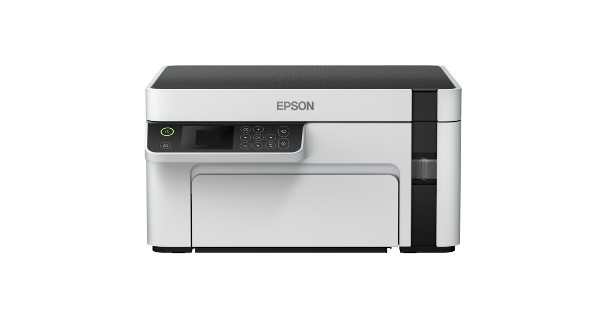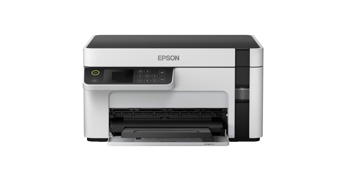 Günstige Druckkosten und drei Funktionen: Der EcoTank ET-M2120 von Epson ist ein innovativer Multifunktionsdrucker für kleine Arbeitsgruppen oder das Homeoffice. Er verfügt über einen großen, nachfüllbaren Tintentank - statt Patronen wird nun direkt Tinte eingefüllt, was die Druckkosten erheblich senkt. Mit im Lieferumfang dieses Geräts, das neben der Schwarzweiß-Druckfunktion auch einen Flachbettscanner und eine Kopierfunktion bietet, ist bereits Tinte für bis zu 5000 Seiten. Der ET-M2120 kann per USB an einen PC angeschlossen oder per WLAN in ein Netzwerk integriert werden.Art.-Nr.: 1616584