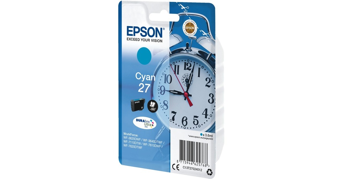 Die Epson-Tinte 27 (C13T27024012) cyan ist kompatibel zu vielen Druckern der Workforce-Serie. Diese Tinte ist mit DURABrite Ultra-Technik besonders für den Druck von laserscharfen Geschäftsdokumenten ausgelegt. Die Ausdrucke sind wisch- und wasserfest und können sofort mit einem Textmarker bearbeitet werden. Da die Tinte sehr schnell trocknet, ist sie besonders für den beidseitigen Druck geeignet.Art.-Nr.: 1341254