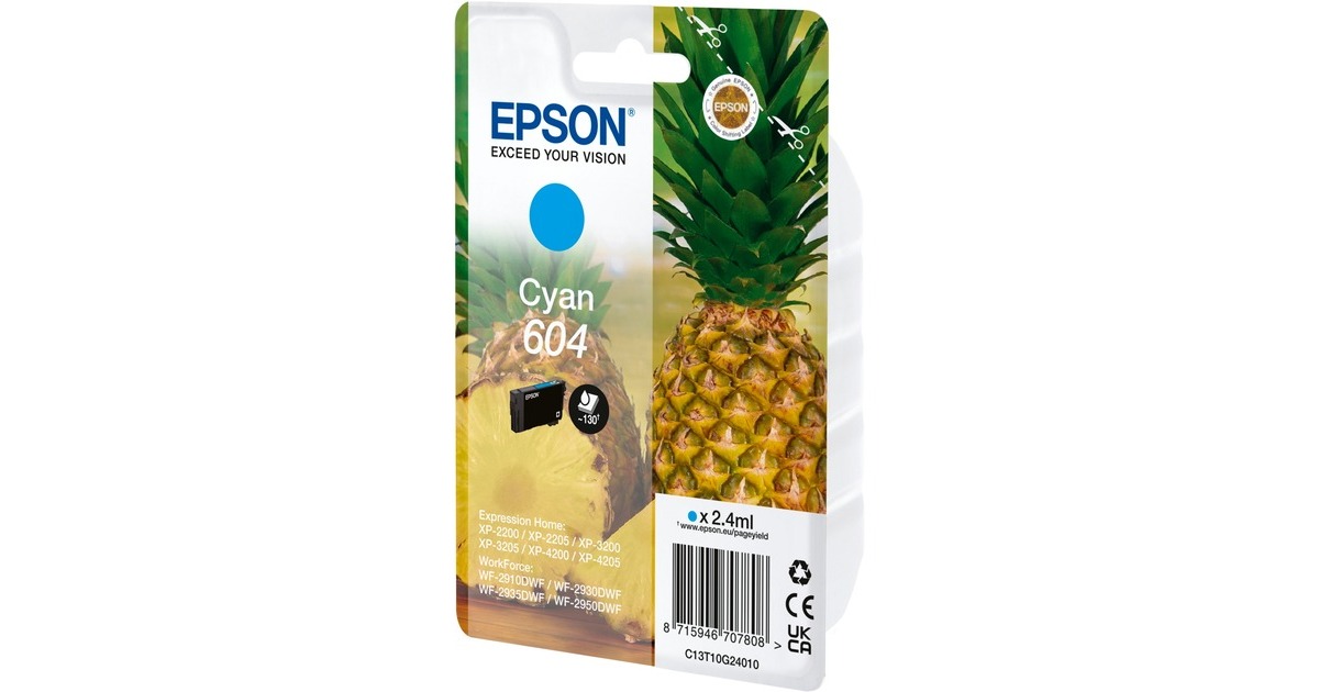 Die Tinte cyan 604 (C13T10G24010) ist ein Original-Verbrauchsmaterial von Epson. Diese Tintenpatrone enthält 2,4 ml Tinte. Sie ist für verschiedene Modelle aus den Serien Expression Home und WorkForce geeignet.Art.-Nr.: 1869963