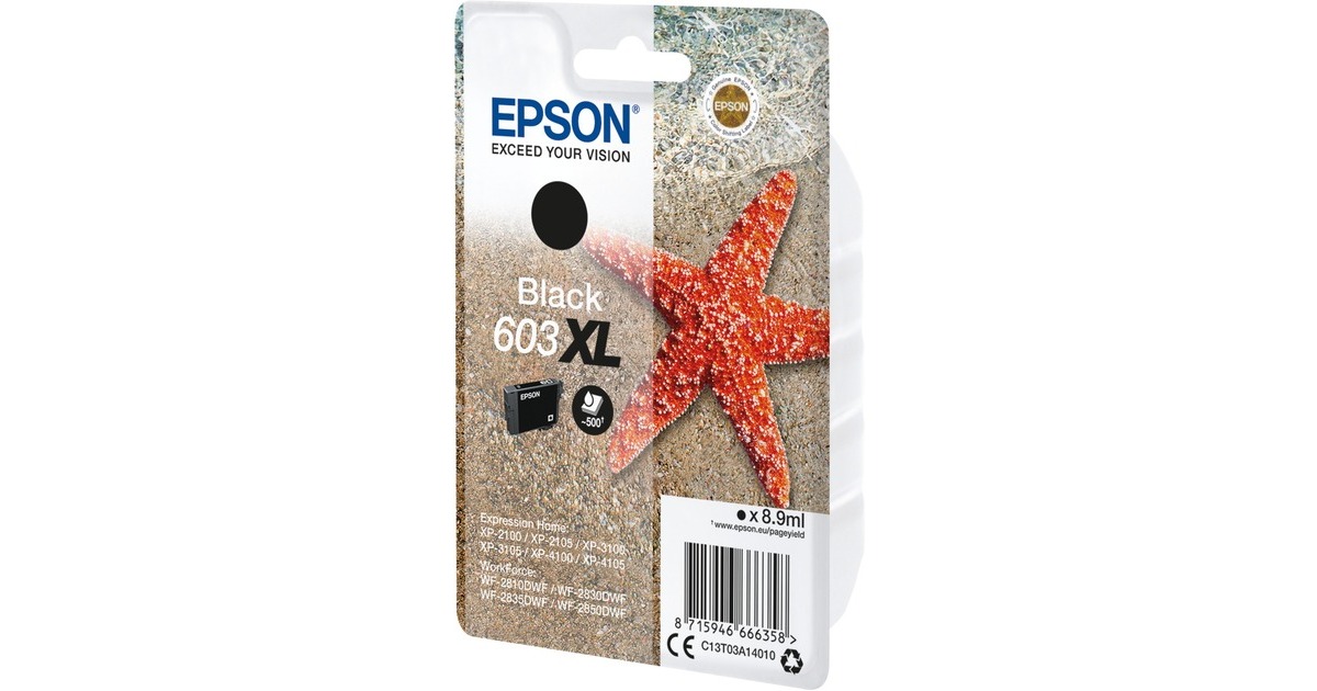 Die Original-Tintenpatrone 603XL (C13T03A14010) von Epson liefert überzeugende Druckergebnisse bei überschaubaren Kosten. Diese Patrone enthält 8,9 ml schwarze Tinte und erreicht eine Reichweite von bis zu 500 Seiten. Sie ist für verschiedene Drucker der Serien WorkForce und Expression Home geeignet. Art.-Nr.: 1634609