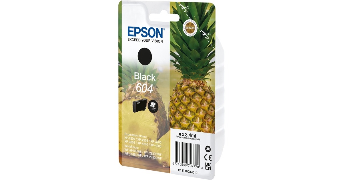 Die Tinte schwarz 604 (C13T10G14010) ist ein Original-Verbrauchsmaterial von Epson. Diese Tintenpatrone enthält 3,4 ml Tinte. Sie ist für verschiedene Modelle aus den Serien Expression Home und WorkForce geeignet.Art.-Nr.: 1869961