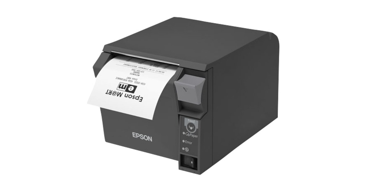 Der TM-T70II ist ein zuverlässiger Thermobondrucker, der vollständig über die Vorderseite bedient werden kann. Dank seiner kleinen Standfläche und der leicht zugänglichen Tasten passt er unter die meisten Tresen und ist damit ideal für den Einsatz an Kassen im Einzelhandel oder in Restaurants geeignet. Seine schnelle Druckgeschwindigkeit von bis zu 250 Millimetern pro Sekunde und der papiersparende Druck ermöglichen es, Kunden schnell zu bedienen. Dabei ist der TM-T70II eine langfristige Lösung: Sein Druckmechanismus hat eine Lebensdauer von bis zu 17 Millionen Zeilen, sein Druckkopf druckt bis zu 120 Kilometer und der integrierte automatische Papierschneider hält bis zu 1,7 Millionen Transaktionen durch. Über optional erhältliche Module kann dieser Bondrucker z.B. mit Schnittstellen für WLAN oder Bluetooth ausgestattet werden.Art.-Nr.: 1401366