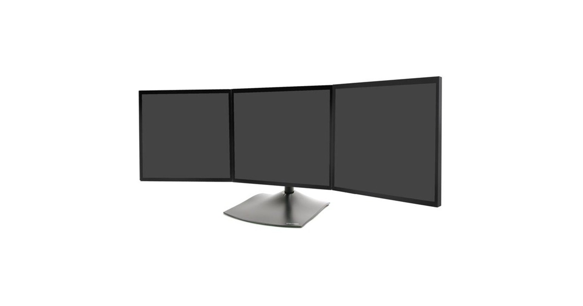 Der dreifache Standfuß erlaubt es, mit nur wenig Platz das volle Potential auszuschöpfen und noch flexibler zu Arbeiten. Der Ständer nimmt drei hängende Flachbildschirm-Monitore auf und gibt so mehr Arbeitsfläche frei.Art.-Nr.: 1790715