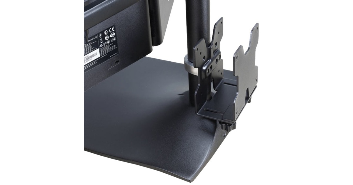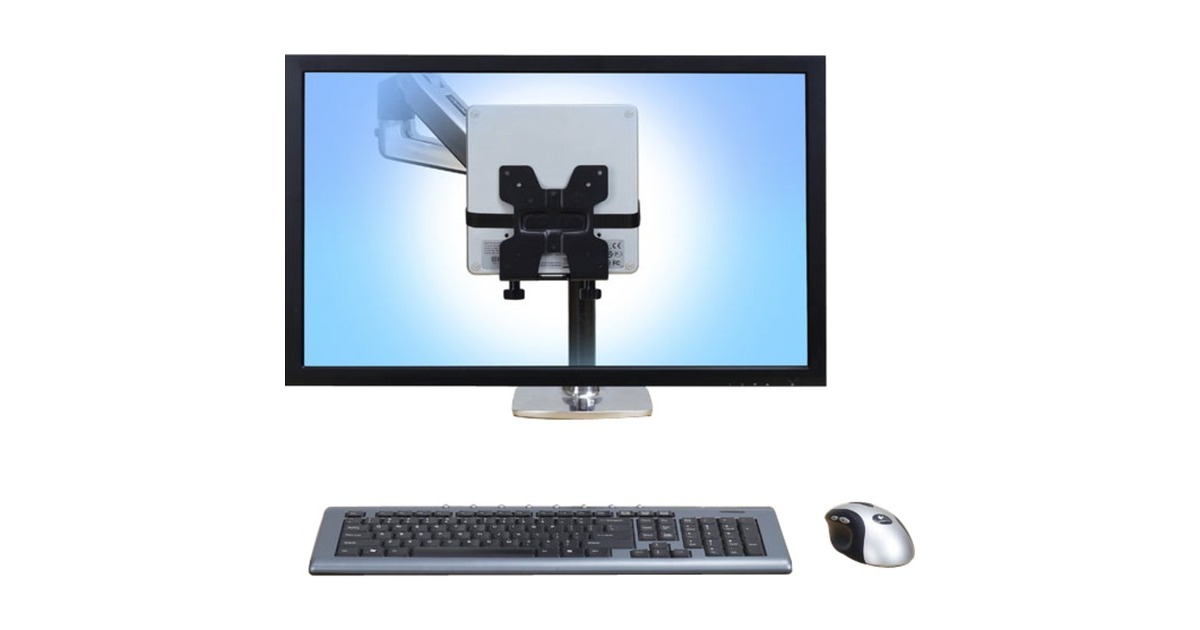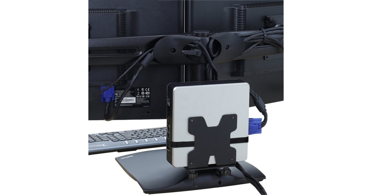 Der Thin-Client-Halter von Ergotron ermöglicht die Integration eines Thin Client, eines kleinen Computers oder eines Apple Mac mini in den Abeitsbereich. Die universelle VESA-Schnittstelle kann des Weiteren an jedem beliebigen VESA-Halter mit einem Lochabstand von 100 mm oder 75 mm montiert werden. Der Thin-Client-Halter passt sich den Abmessungen des Gehäuses darüber hinaus problemlos an und ist zudem größenverstellbar. Um maximale Widerstandsfähigkeit zu gewärleisten ist der Thin-Client-Halter aus Stahl gefertigt.Art.-Nr.: 1211526