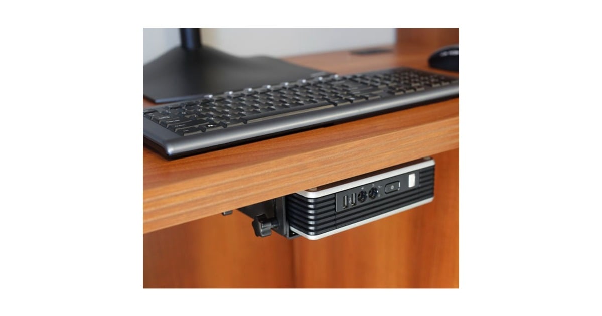 Der Thin-Client-Halter von Ergotron ermöglicht die Integration eines Thin Client, eines kleinen Computers oder eines Apple Mac mini in den Abeitsbereich. Die universelle VESA-Schnittstelle kann des Weiteren an jedem beliebigen VESA-Halter mit einem Lochabstand von 100 mm oder 75 mm montiert werden. Der Thin-Client-Halter passt sich den Abmessungen des Gehäuses darüber hinaus problemlos an und ist zudem größenverstellbar. Um maximale Widerstandsfähigkeit zu gewärleisten ist der Thin-Client-Halter aus Stahl gefertigt.Art.-Nr.: 100038694