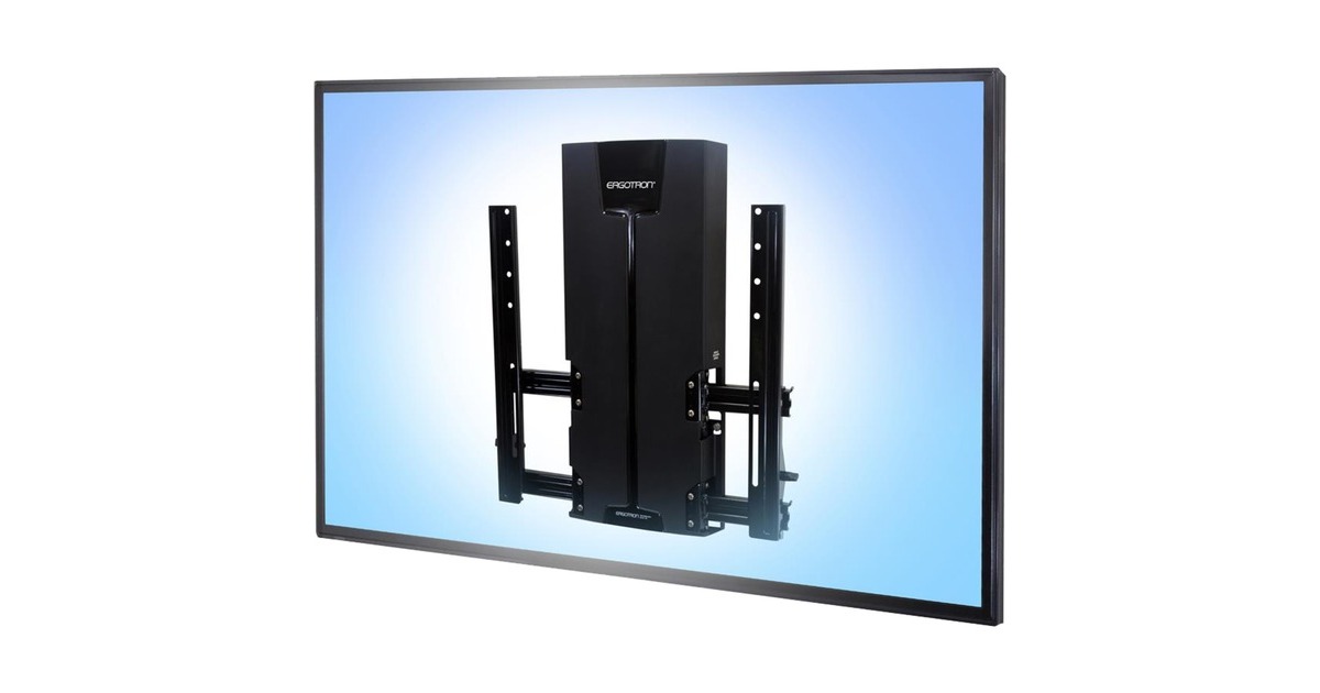 Mit dieser Halterung können Sie Ihren Fernsehapparat oder Ihr großes Display mühelos um bis zu 40,6 cm anheben und absenken und um bis zu 10° neigen, um einen störenden Blendeffekt zu verhindern. Dieses revolutionäre Design bietet eine beispiellose Höhenverstellbarkeit in einem extrem flachen Modul. Für das Verschieben des Displays – nach unten, um es im Sitzen zu betrachten, und nach oben für ein Betrachten im Stehen – bedarf es nur einer leichten Berührung.Art.-Nr.: 1833217