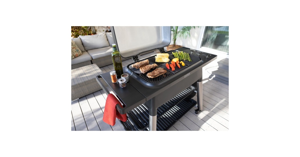 Die Everdure by Heston Blumenthal Grills kombinieren neuste Technologien und ästhetisches Design in ihrer schönsten Form. Das kompakte Modell FURNACE bietet nicht nur technische Vorzüge, sondern ist auch ein Design-Objekt im Garten oder auf der Terrasse. Das nahtlose, fließende Design wird durch eine Auswahl moderner Farben abgerundet. Der Everdure FURNACE ist ganz einfach in der Bedienung und schnell einsatzbereit. Sowohl die Höhe als auch die bis zu 10mm starken Wände des Aluminium-Deckels eignen sich perfekt zum indirekten Grillen. Der massive Deckel speichert die enorme Hitze im Inneren des Garraums. Die Formgebung der hohen Haube, in Verbindung mit der aufsteigenden Hitze, begünstigt die 360° Luftzirkulation im Garraum. Das Grillgut bleibt saftig und liefert wundervolle Aromen. So meistern auch ambitionierte Hobby-Griller spielend die hohe Kunst des indirekten Grillens. Die 3-teiligen Grillroste lassen sich im Handrumdrehen gegen solide gusseiserne Grillplatten austauschen. So kann man den Aufbau des Grills ganz einfach an die Gerichte anpassen, die zubereitet werden sollen. Die Grillroste sind außerdem so konzipiert, dass sie ein Hochschlagen von Flammen weitestgehend vermeiden und die Brenner sauber halten. Die drei Hochleistungs-Gasbrenner im O-Design sind präzise steuerbar. Der Korpus und die beiden Seitenablagen (eine davon runterklappbar) sind aus rostfreiem Aluminium-Druckguss gefertigt, Deckel und Grillflächen sind zur leichten Reinigung emailliert. Der doppelte Gitter-Ablageboden des Everdure FURNACE schafft Platz für Zutaten und Grillzubehör. Die schräg positionierten Standbeine sorgen für besonders hohe Stabilität, sind aber zum Transportieren leicht abnehmbar.Art.-Nr.: 100041371