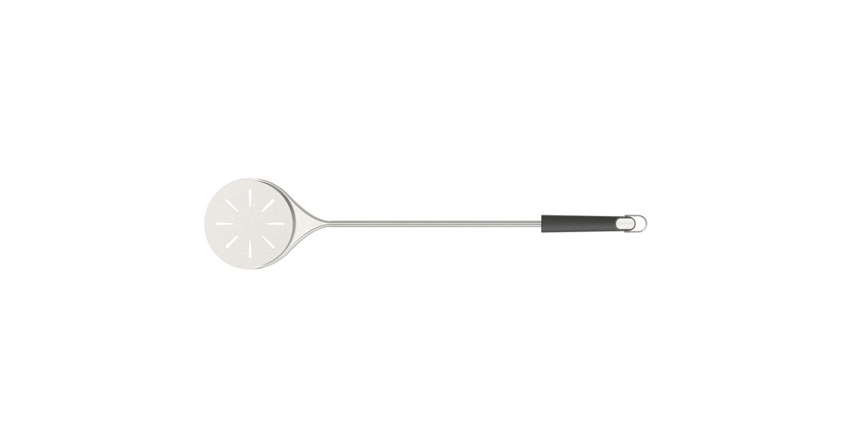 Der Pizzawender von Everdure ist aus perforiertem Aluminium gefertigt. Der perforierte Pizzawender lässt überschüssiges Mehl hindurchfallen. Der ultradünne Wender eignet sich zum Drehen von Pizzen im Pizzaofen.Art.-Nr.: 100044011