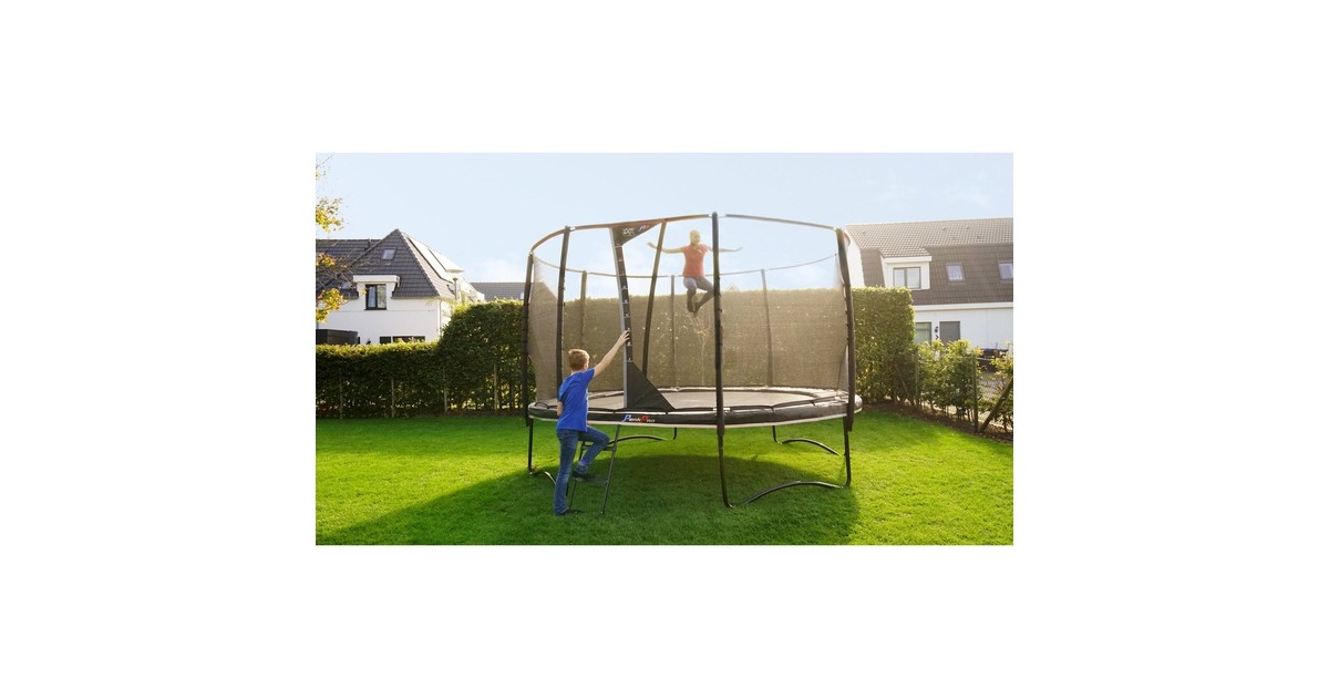 Das PeakPro ist ein hochwertig verarbeitetes Trampolin mit erstklassigem Sprungkomfort. Es ist für Kinder mit viel Springerfahrung geeignet: Die flexiblen Springfedern haben eine Länge von 25 Zentimetern, was auch höhere Sprünge ermöglicht. Sicherheit gibt dabei das serienmäßige Sicherheitsnetz, beim Einstieg hilft die mitgelieferte Leiter. Der Rahmen dieses runden Trampolins ist gegen Rost galvanisiert und pulverbeschichtet, es steht auf stabilen Füßen und bleibt damit auch bei besonders wilden Sprüngen an seinem Platz. Dieses Trampolin hat einen Durchmesser von 305 cm (Sprungfläche ohne Schutzrand 215 cm) und ist für ein maximales Benutzergewicht von 130 Kilogramm ausgelegt. Art.-Nr.: 1782720