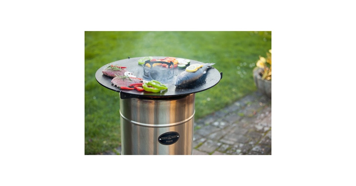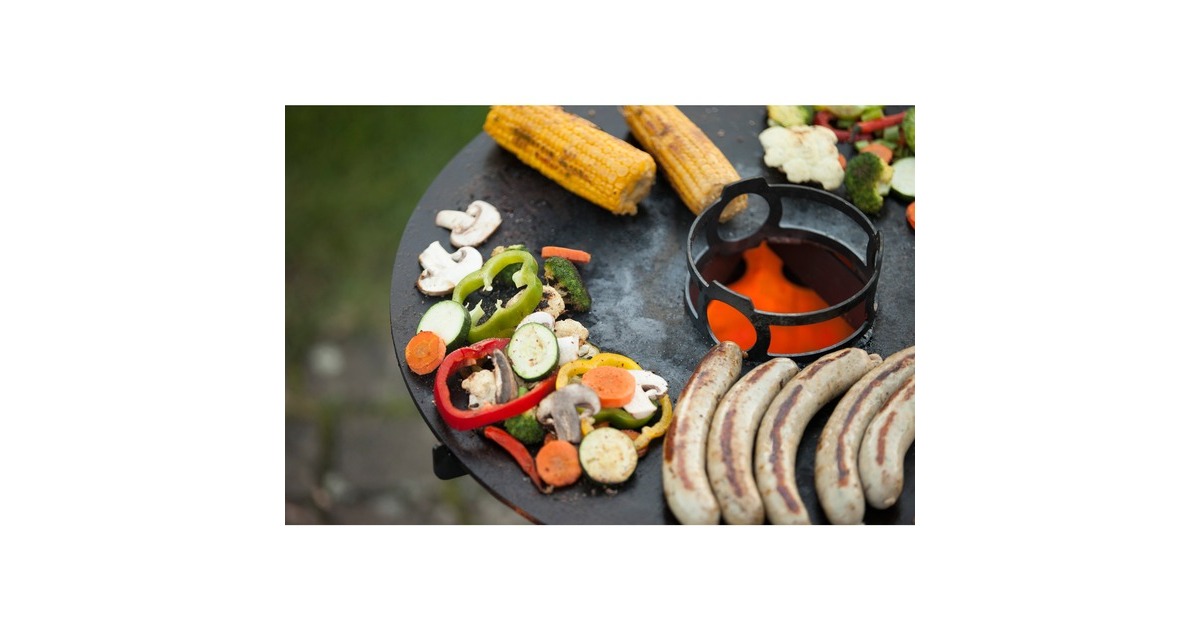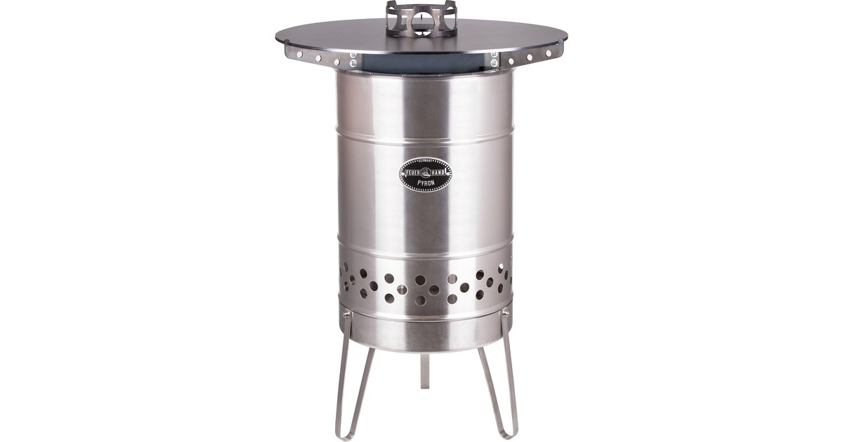 Die Feuerhand Pyron Plate verwandelt den Feuerhand Pyron in eine Kochstation und ermöglicht mehr als Grillen: Rundum Kochen auf dem Pyron. Auf der massiven 6mm starken Stahlplatte kann man mit der Hitze nach Herzenslust aromatisch braten. Die Platte wölbt sich leicht, so dass das Essen nicht an der Seite herunterfällt. Der Kochaufsatz in der Mitte sichert Eier, Würstchen und Co. gegen ein Abrutschen ins Feuer. Der Kochaufsatz in der Mitte der Platte dient als stabile Abstellmöglichkeit von Töpfen, Kesseln und Kannen. So kann man die Hitze des Pyron nutzen, um mit Freunden ganze Gänge auf der Pyron Plate zuzubereiten. Die großzügigen Aussparungen versorgen die Feuertonne auch mit Kochgeschirr auf dem Aufsatz mit genügend frischem Sauerstoff, um das Feuer ordentlich brennen zu lassen. Außerdem ermöglicht die Aussparung in der Mitte des Aufsatzes ein sicheres Nachfüllen von Holz während der Benutzung. Mit dem dreiarmigen Trägergestell liegt die Pyron Plate sicher auf dem Pyron auf.Art.-Nr.: 1532785