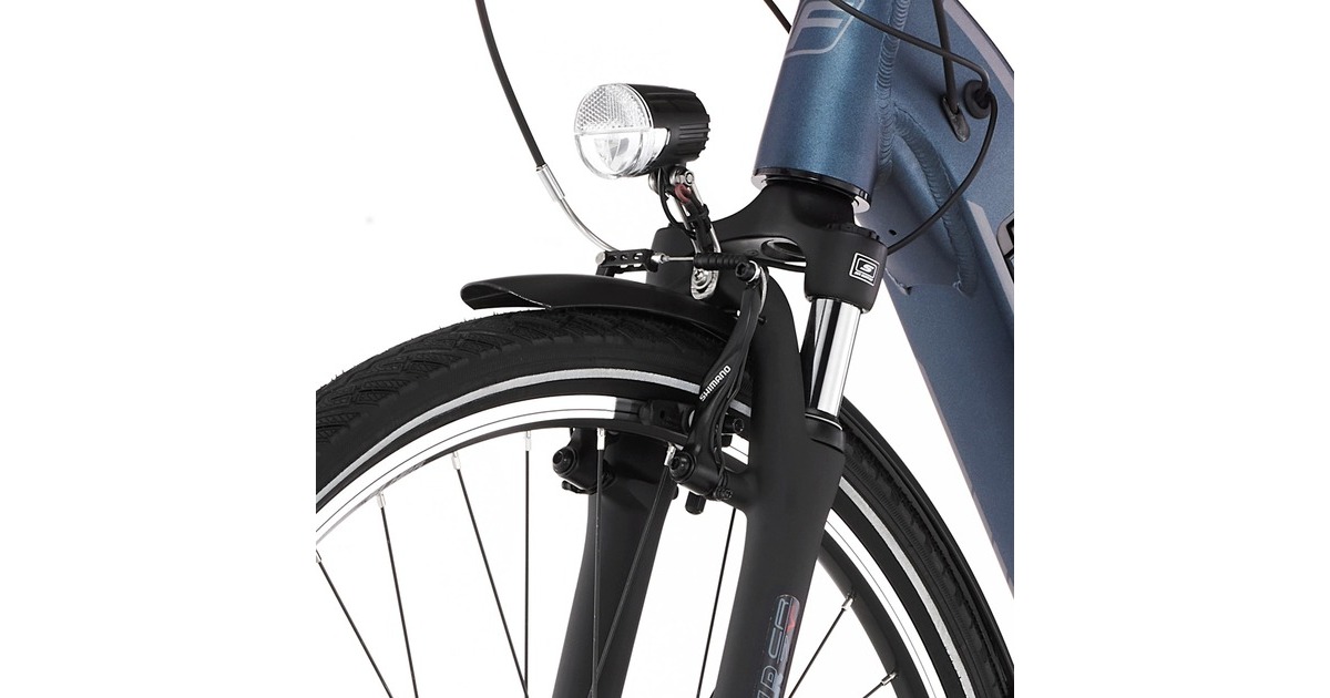 Wer bei seinem E-Citybike nicht auf aufgeräumte Optik verzichten will, der liegt mit diesem Tiefeinsteiger richtig. Das Einstiegsmodell in dieser Klasse ist mit modernem Mittelmotor und vollintegriertem 418 Wh Akku ausgestattet. Verzögert wird das Rad mit soliden Felgenbremsen. Die Kombination aus pflegeleichter 3-Gang-Nabenschaltung mit Freilauf ist auch für jüngere Fahrer geeignet. Das helle LED-Dauerlicht sorgt im Straßenverkehr für Sicherheit. Art.-Nr.: 1789161