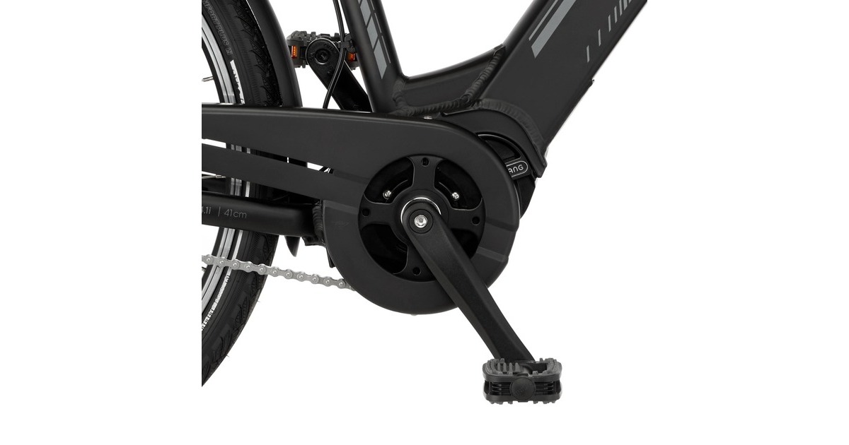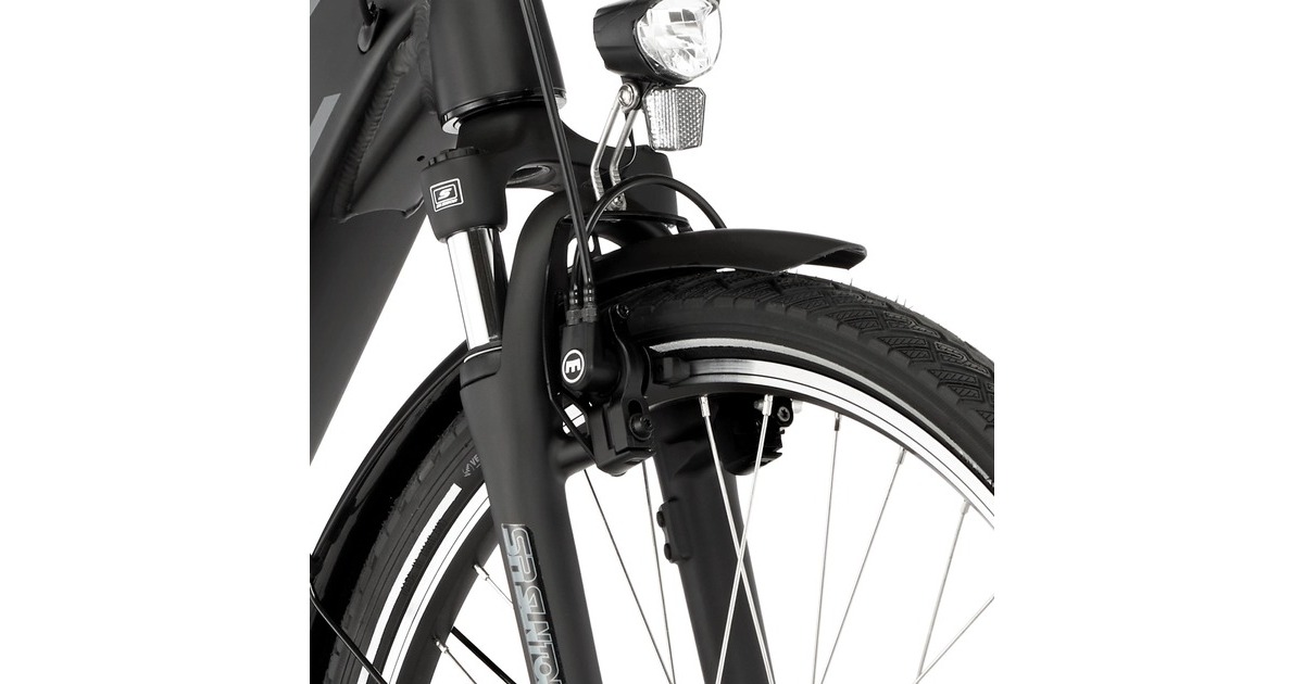 Ein zuverlässiges Elektro Citybike mit bewährtem Tiefeinstieg und einem 504 Wh starken Akku. Weil Komfort beim urbanen Radfahren nicht zu kurz kommen darf, zählen Federgabel und gefederte Sattelstütze zur Ausstattung. Die Kombination von hydraulischen Felgenbremsen und einer Rücktrittbremse sorgen für sichere und verlässliche Verzögerung. Der 70 Lux starke LED-Frontscheinwerfer sorgt für eine optimale Ausleuchtung und Sichtbarkeit im Straßenverkehr.Art.-Nr.: 1789163