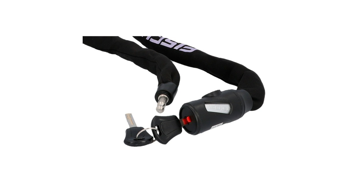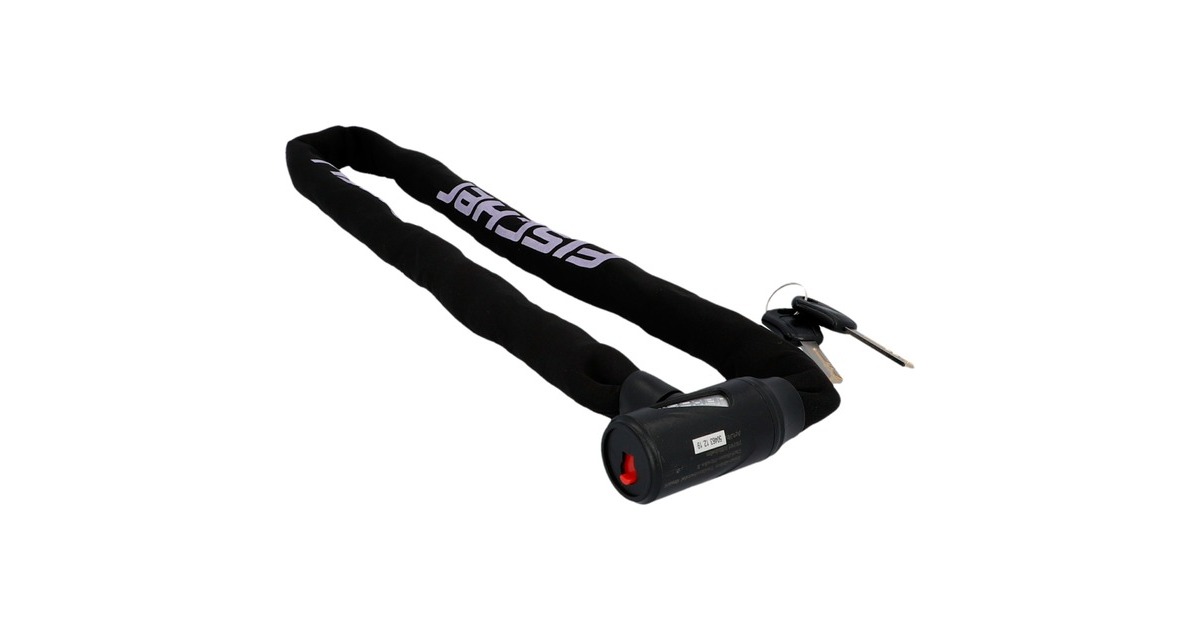 Das FISCHER Kettenschloss bietet eine Kettenlänge von 100 cm und eine Kettenstärke von 6 mm. Ein Textilschlauch aus neoprenartigem Material schütz das Fahrrad vor Lackschäden und minimiert Klappergeräusche. Durch die Abdeckung des Schließkörpers gelangt kein Schmutz in das Schloss.Art.-Nr.: 1626772