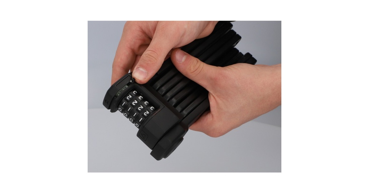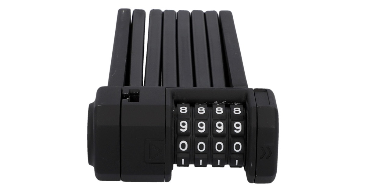 Das einfach handzuhabende Faltschloss mit einer Länge von 110 cm, einer 4-fach Zahlenwalze und damit bis zu 10.000 frei wählbaren Zahlenkombinationen sorgt für eine zuverlässige Sicherung von bis zu zwei Fahrrädern vor Diebstahl. Es überzeugt mit Flexibilität bei geringem Gewicht und kompakter Bauform - eine ideale Kombination aus Widerstandskraft, Flexibilität, Gewicht und Transportmaß. Die kunststoffummantelten Stäbe schonen den Lack und schützen vor Kratzern.Art.-Nr.: 1834977