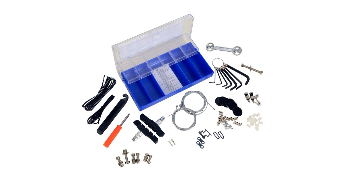 Das 100-teilige FISCHER Reparatur-Set 85530 eignet sich für Wartungsarbeiten an Fahrrad und E-Bike. Es enthält: 1x Knochenschlüssel, 6x Innensechskant-Schlüssel 2mm / 2,5mm / 3mm / 4mm / 5mm / 6mm, 2x Reifenheber, 2x V-Brake Bremsbelag schraub., 1x 2-adriges Kabel für Rücklicht, 1x 2-adriges Kabel für Frontlicht, 6x Schnellflicken, 2x Blitzventil, 2x Schraderventil, 2x Felgenmutter, 2x Ventilkappen, 2x Überwurfmutter, 1x Ein/Ausbau-Werkzeug für Schraderventil, 2x Kettenverschlussglied, 8x Endhülse für Bremszug Außenhülle, 10x Endhülse für Innenzug, 15x O-Ringe, 10x Enhülse für Schaltzug Außenhülle, 3x Schraube M6 - 16mm / 25mm / 50mm, 3x Unterlagscheibe M6, 3x Selbstsichernde Mutter M6, 2x Schraube M5 - 12mm, 2x Schraube M5 - 16mm, 4x Unterlagscheibe M5, 4x Selbstsichernde Mutter M5, 1x Schraubenzieher Kreuz, 1x Schaltzug, 1x Bremszug, 1x Torx T25.Art.-Nr.: 1465644