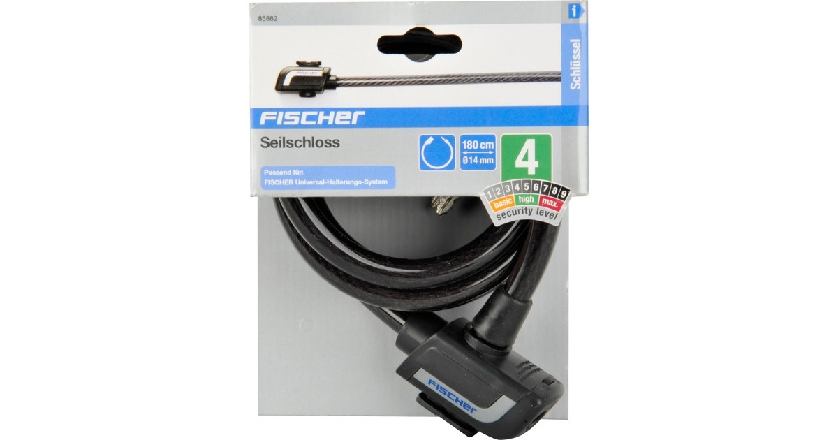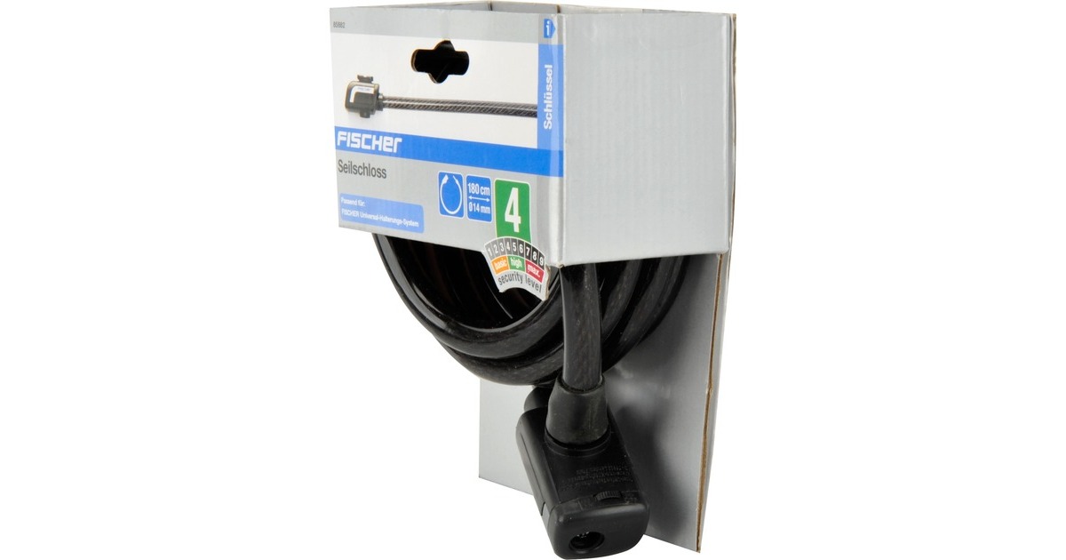 Das Seilschloss ist 180 cm lang und 14 mm dick. Der Schließkörper ist abgedeckt und verhindert ein Eindringen von Schmutz. Mit dem beiliegenden Klettband kann das Schloss für den einfachen Transport am Fahrrad befestigt werden.Art.-Nr.: 1398520