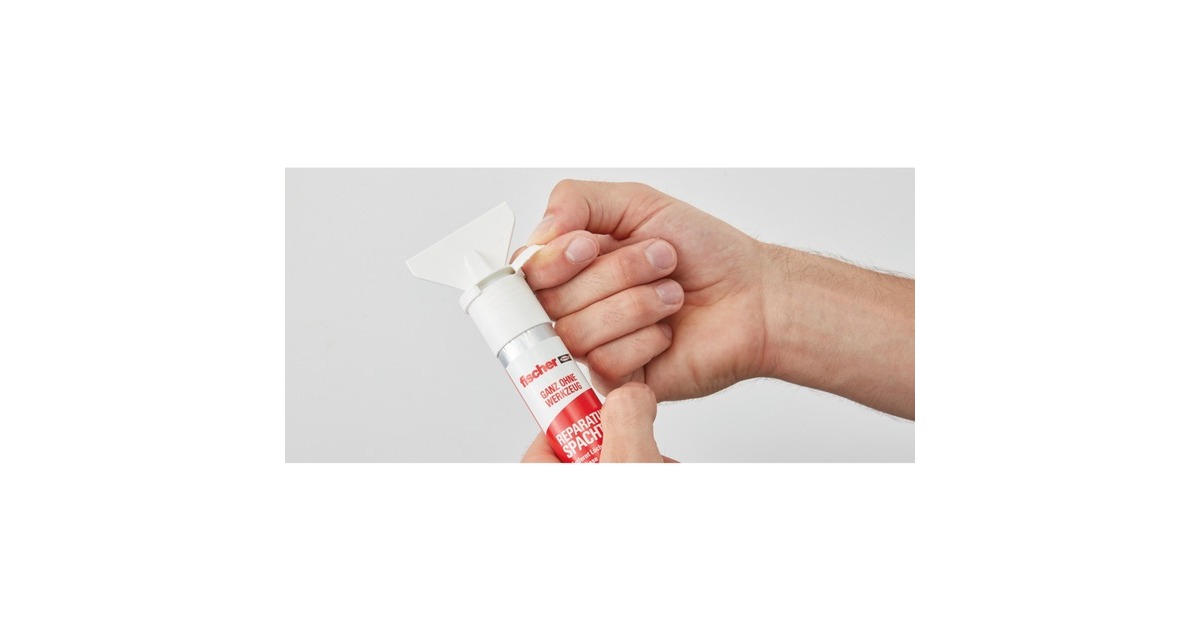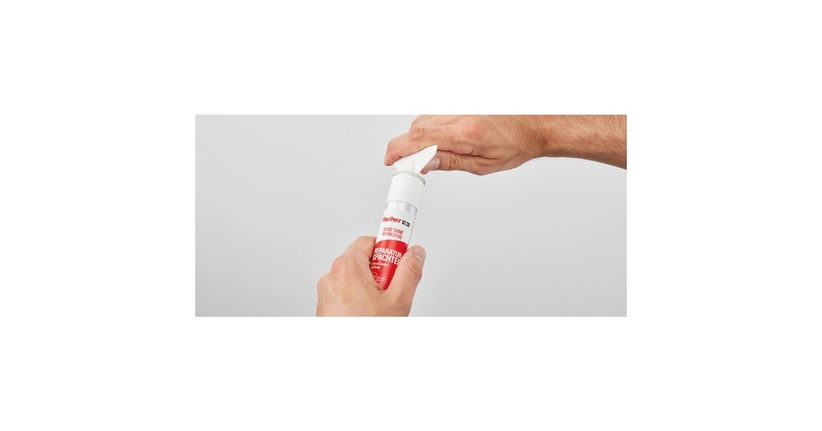 Der fischer REPARATUR SPACHTEL rettet die Wand vor hässlichen Bohrlöchern oder Rissen. Er besteht aus einem Gemisch auf Acryldispersionsbasis, das sich durch seine elastische Eigenschaft flexibel Löchern und Rissen anpasst. Das kräftige Weiß des Spachtels lässt die Löcher verschwinden und kann bei Bedarf auch geschliffen und überstrichen werden. Die Spachtelmasse dringt tief in schmale Risse ein und deckt sie perfekt ab. Mit der integrierten Spachtel kann die Spachtelmasse genau bearbeitet werden. Die Spachtelmasse ist sehr leicht und zeigt bei Löchern bis zu 12mm kein Schrumpfen. Der fischer REPARATUR SPACHTEL ist innen und außen anwendbar, geruchsneutral, lösemittel-, isocyanat- und silikonfrei, außerdem UV- und alterungsbeständig.Art.-Nr.: 1525793