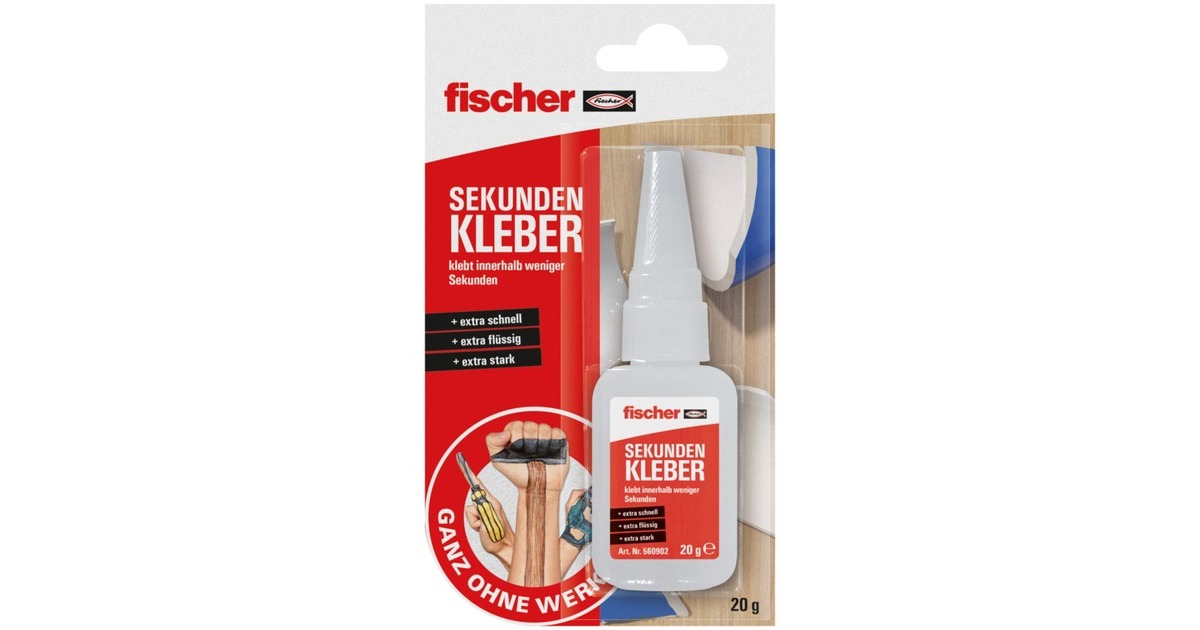 Für den fischer GOW Sekundenkleber ist ein Sprung im Glas oder ein verwinkeltes abgebrochenes Keramikstück kein Problem. Der superschnelle, flüssige Klebstoff fließt auch in kleinste Ecken, Spalten und Risse, schafft dort innerhalb weniger Sekunden eine extrem starke Verbindung und klebt fast alle Materialien. Dadurch kann er sehr flexibel zur Reparatur verwendet werden, es braucht nicht länger als 30 Sekunden, bis es hält. Er ist lösemittelfrei und eignet sich z.B. für Metall, Glas, Holz, Leder, Keramik, Stoff, Papier, Fensterdichtungen, Gummi und viele Kunststoffe. Dabei zeichnet er sich durch seine hohe Zähigkeit, Haltbarkeit und starke Klebkraft aus.Art.-Nr.: 1780427
