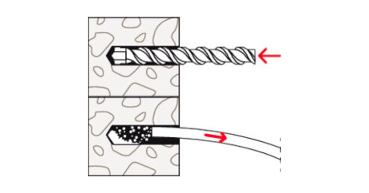 Seitliche Rippen verhindern Mitdrehen im Bohrloch |