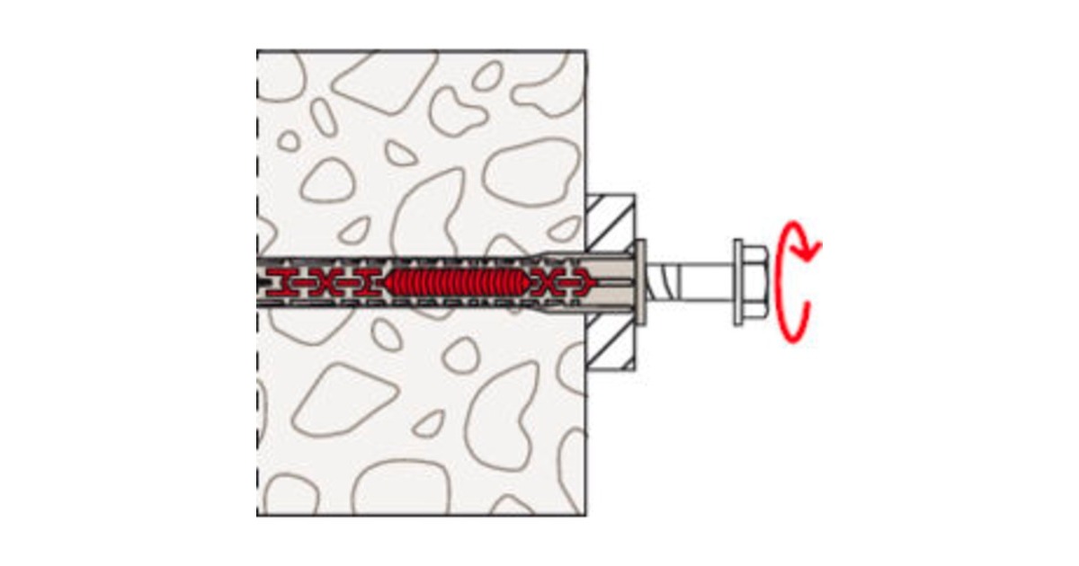 Seitliche Rippen verhindern Mitdrehen im Bohrloch |
