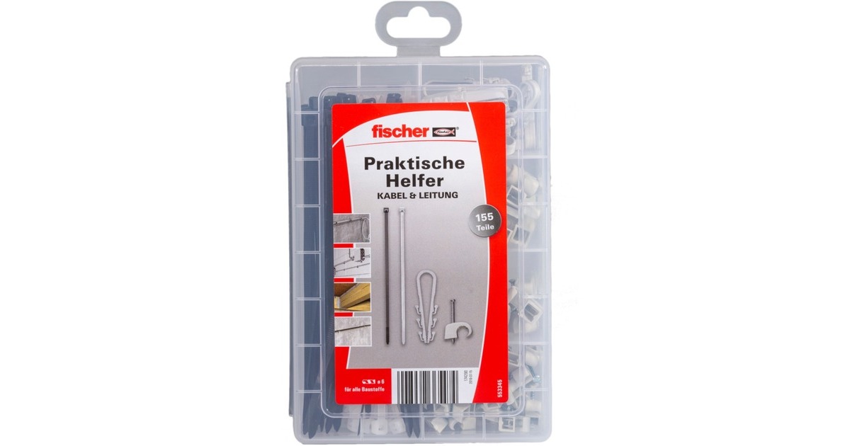 Die fischer Praktische Helfer Box Kabel & Leitung enthält vorsortiert 80 Kabelbinder, 15 Steckleitungsschlaufen und 60 Nagelschellen in zwei verschiedenen Größen. Das Sortiment eignet sich ideal zur Befestigung von Elektrokabeln, Elektroleitungen, Datenleitungen, Kabelbündeln, Stahlpanzerrohren oder flexiblen Rohren und ähnlichem. Die hochwertige Box aus schlagfestem Kunststoff mit transparentem Deckel ermöglicht die Übersicht auf einen Blick. Die Praktische Helfer Box kann fest verschlossen und wieder mit Nägeln, Dübeln oder Schrauben befüllt werden.Art.-Nr.: 1700965