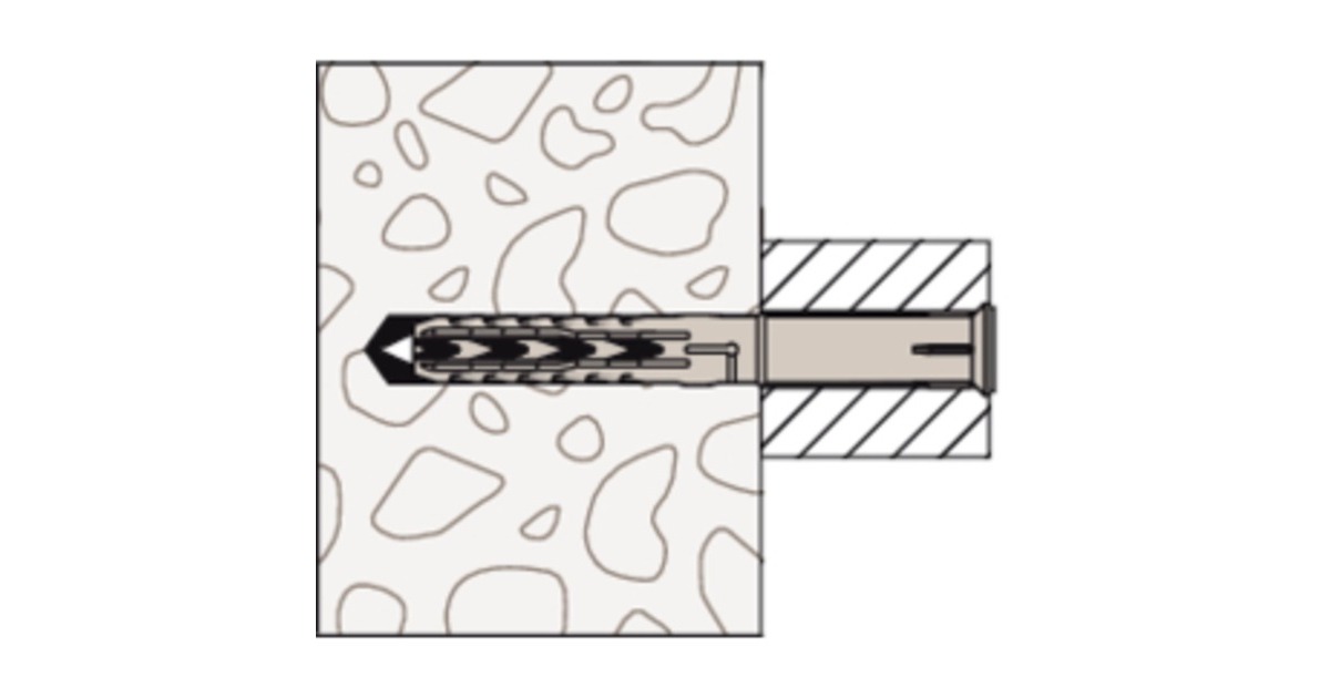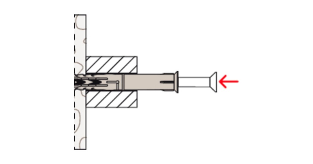 Die erforderliche Schraubenlänge ergibt sich aus Dübellänge + Anbauteildicke + 1x Schraubendurchmesser |