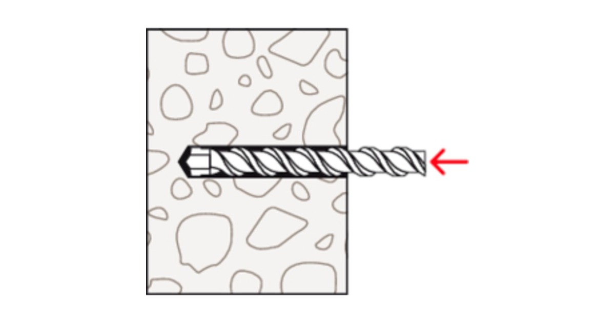 Die erforderliche Schraubenlänge ergibt sich aus Dübellänge + Anbauteildicke + 1x Schraubendurchmesser |