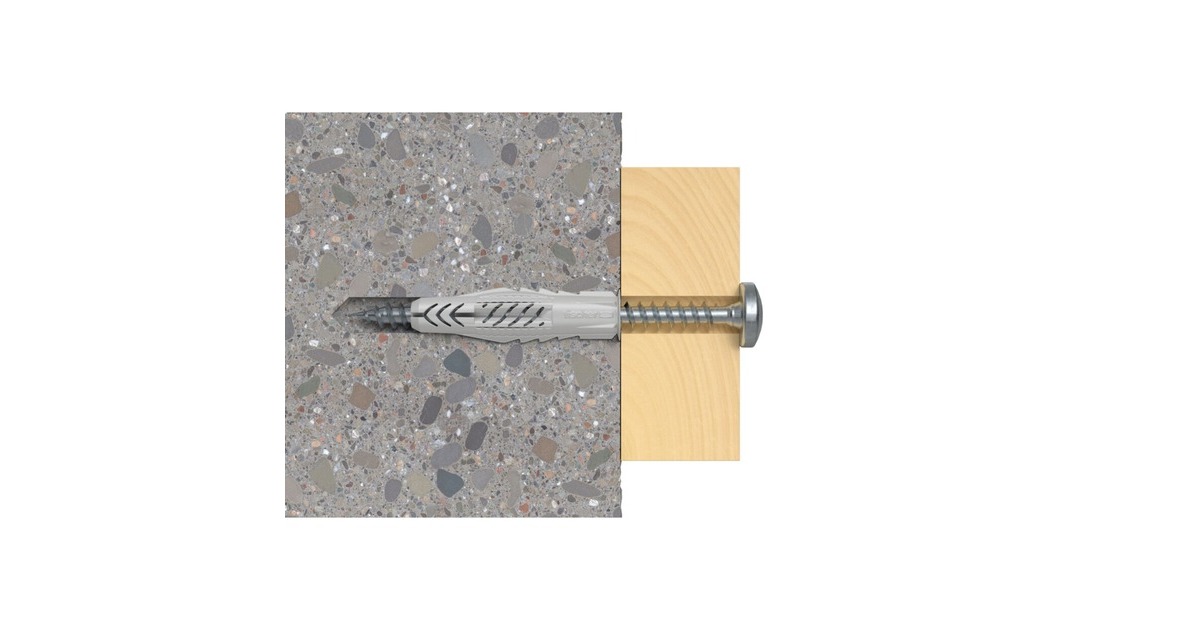 Die erforderliche Schraubenlänge ergibt sich aus Dübellänge + Anbauteildicke + 1x Schraubendurchmesser |