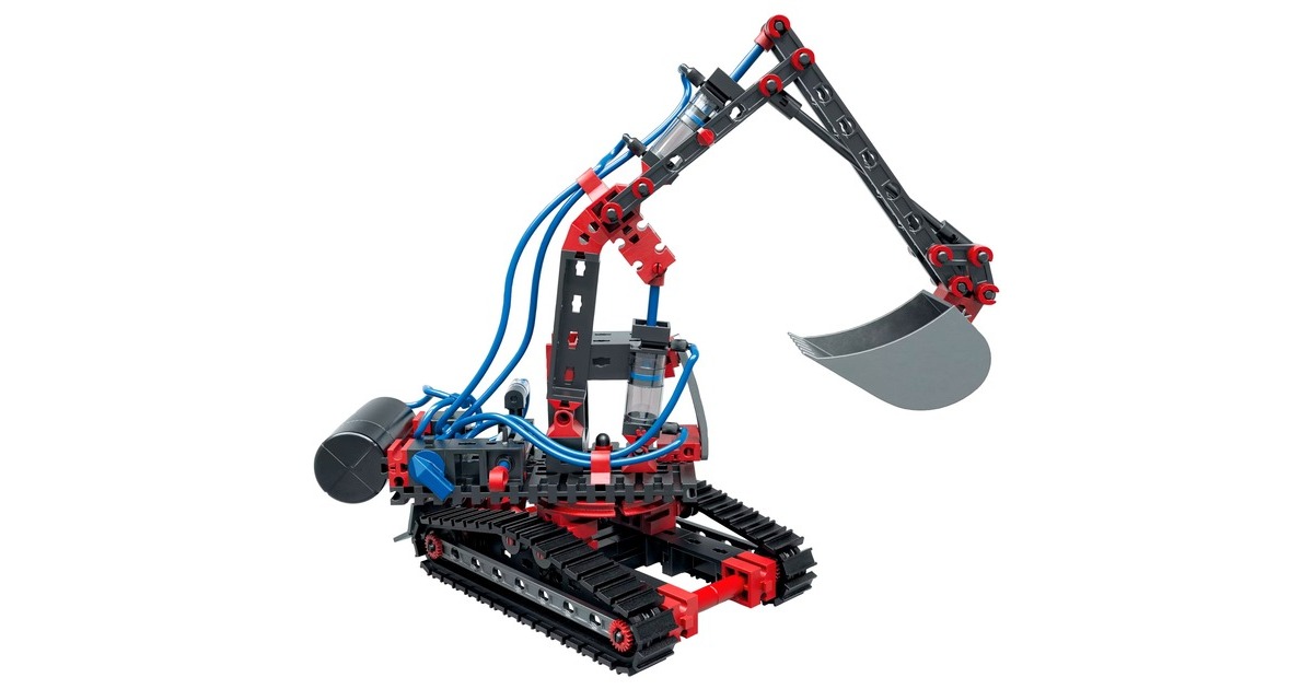 Das Set Pneumatic Power aus der Baukasten-Welt von fischertechnik vermittelt Kindern ab 8 Jahren spielerisch die Grundlagen der Pneumatik. Realitätsnahe Modelle zeigen die Funktionsweise von Pneumatikventilen und -zylindern. Die Luft wird manuell in einen Luftspeicher gepumpt. Durch das Betätigen der Handventile gelangt die Druckluft über die Schläuche in die Pneumatikzylinder. Neben einem Bagger können aus den insgesamt 200 Teilen vier weitere Modelle gebaut werden. Art.-Nr.: 100016640