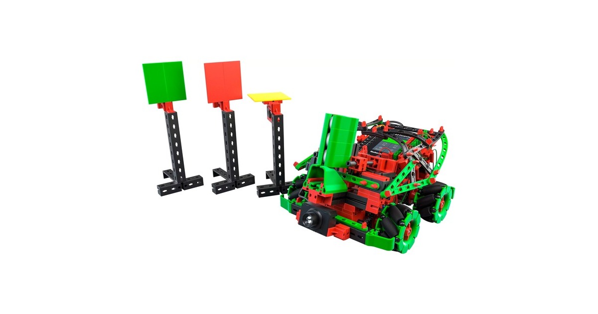 Neun spannende Modelle warten darauf, mit dem Set Robitcs Hightech aus der Baukasten-Welt von fischertechnik gebaut und programmiert zu werden. Die Einstiegsmodelle bieten einen leicht verständlichen Einblick in die Welt der Robotik und Programmierung. Wer schon fortgeschrittener ist, kann mit High-End-Modellen wie dem Malroboter oder dem Ballroboter loslegen. Ein Highlight in diesem Baukasten sind die Omniwheels, die von vier Encodermotoren angetrieben werden und so eine Bewegung in jede Richtung ermöglichen. Die neue Sprachsteuerung ermöglicht es, die Roboter mit der eigenen Stimme auf Tour zu schicken. Ebenso enthalten ist eine Kamera mit Bildverarbeitung, mit der beispielsweise der Fußballroboter einen Ball erkennen kann. Der fischertechnik TXT 4.0 Controller bietet mit der neuen Programmiersoftware ROBO Pro Coding viele neue Features. Neben der grafischen Programmierung in einer Blockly-Umgebung ist nun auch eine Programmierung über Python möglich. Die Software ist betriebssystemunabhängig und auch auf mobilen Endgeräten einsetzbar. Als weitere Aktoren und Sensoren enthält der Baukasten einen Servomotor, einen Infrarot-Spursensor und einen Ultraschall-Abstandssensor.Art.-Nr.: 100016663