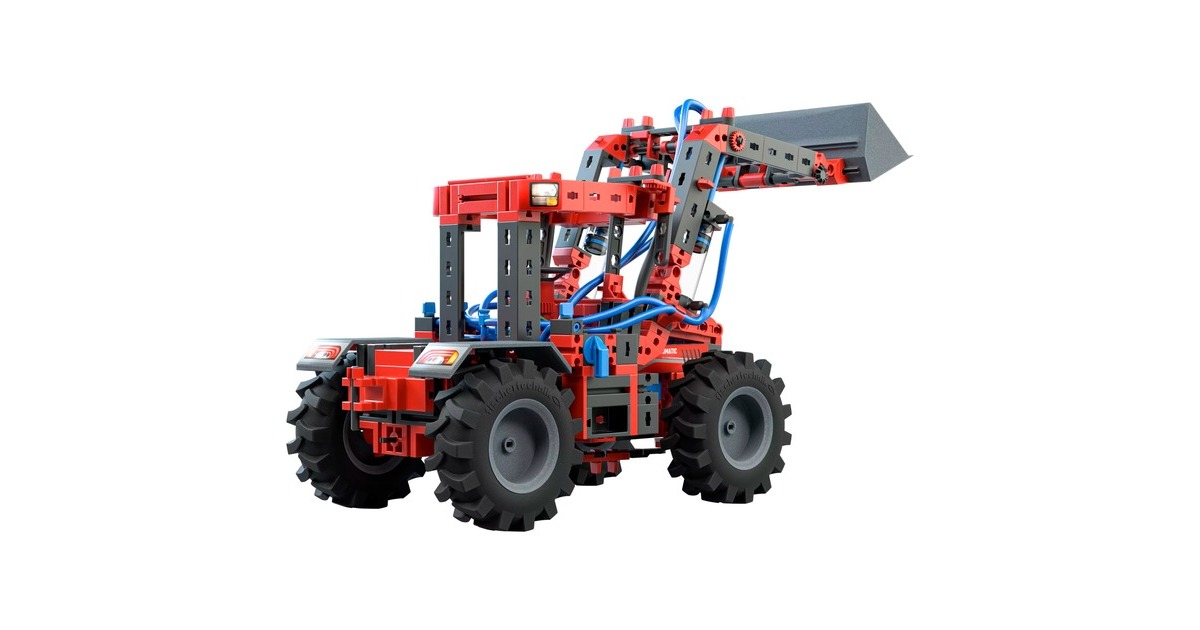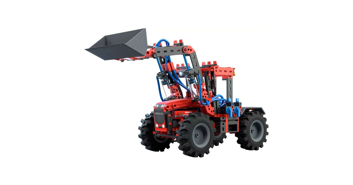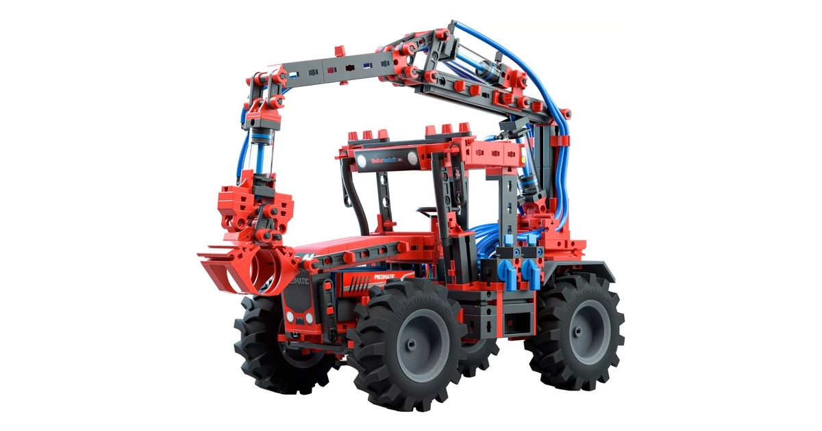 Der fischertechnik-Baukasten "Strong Pneumatics" vermittelt schnelles und einfaches Verständnis für die verschiedenen Einsatzmöglichkeiten pneumatischer Systeme. Sechs verschiedene Modelle bieten spannende Abenteuer für junge Konstrukteurinnen und Konstrukteure. Neben einem Baumstammgreifer und einem Frontlader ist auch ein zweifacher Kreiselschwader im Baukasten enthalten. Die Pneumatik-Modelle demonstrieren mithilfe ihrer Pneumatikventile und -schläuche, einem Kompressor oder den Abluftdrosseln die vielfältigen Funktionsweisen und ermöglichen so die Ausführung verschiedener Bewegungen. Art.-Nr.: 100016654