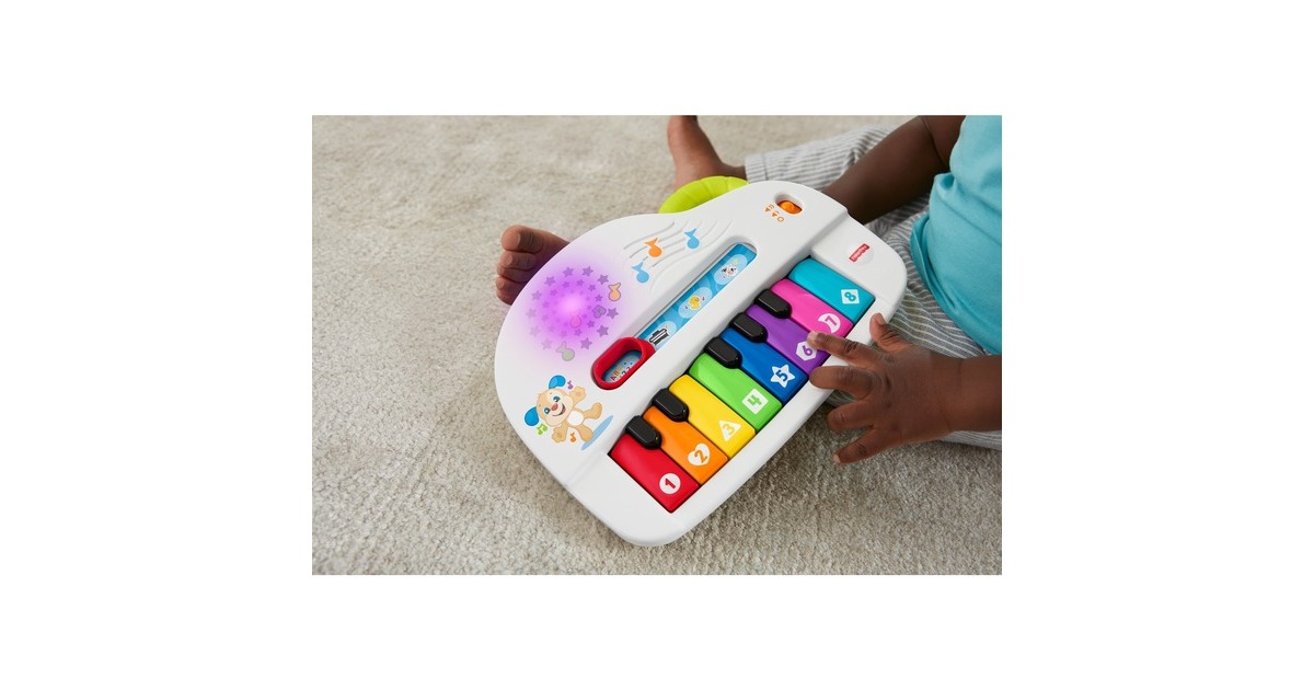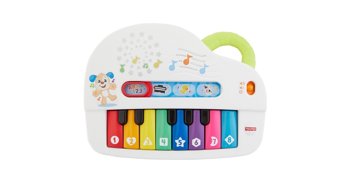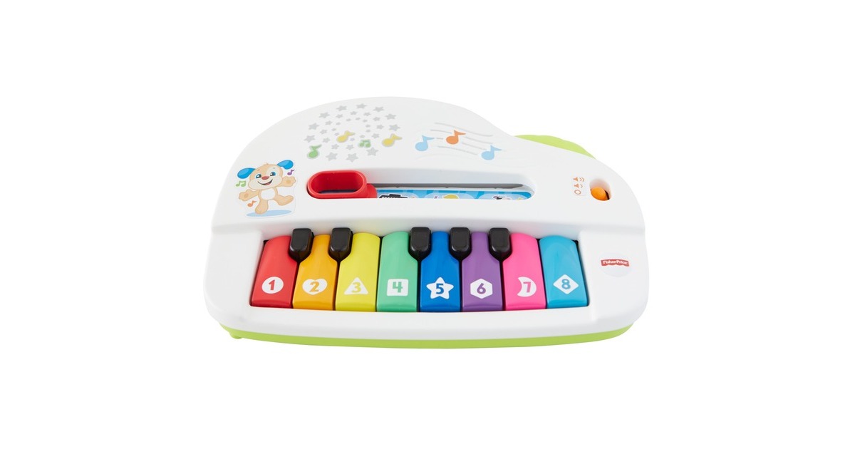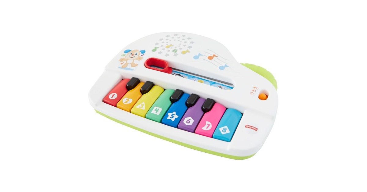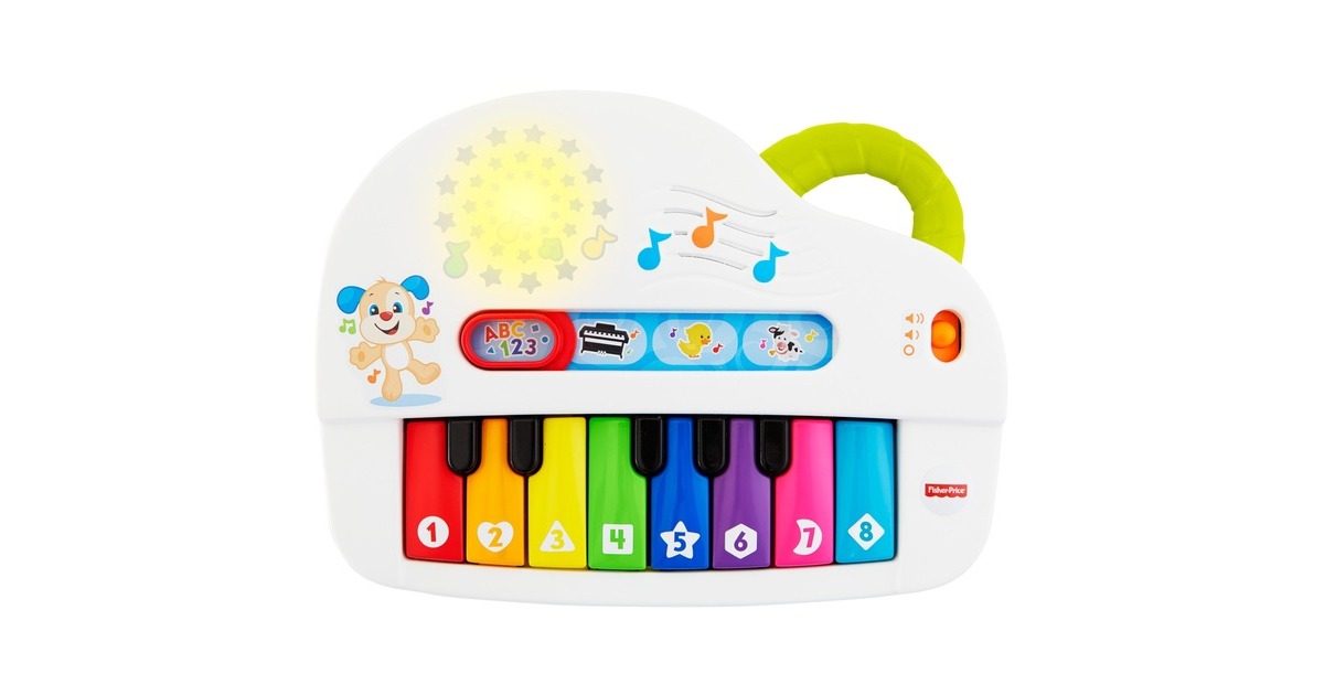 Fisher-Price Babys erstes Keyboard kann auf vier verschiedene Arten gespielt werden und sorgt somit für musikalische Unterhaltung beim „Komponieren“ und spielerischen Lernen. Bei Tastendruck ertönen echte Klavierklänge, quakende Enten, muhende Kühe oder allerlei lustige Lieder und Sätze über Farben, Zahlen und Formen. Dabei leuchtet das Klavier auf. Dank des praktischen Griffs kann dieser musikalische Spaß überall hin mitgenommen werden! Spielerische Lieder und Sätze führen Kinder an das Alphabet, Farben, Formen, Zahlen und mehr heran! Durch das Drücken der Tasten zum Abspielen von Liedern, Geräuschen und Klaviernoten in Kombination mit bunten Lichtern werden Kleinkinder auf spaßige Weise an Ursache und Wirkung herangeführt. Durch den Übergang vom Hämmern in die Tasten zum Spielen mit einzelnen Tasten und das Greifen des Schiebereglers zum Vor- und Zurückschieben werden Geschicklichkeit und Auge-Hand-Koordination geschult.Art.-Nr.: 1514888