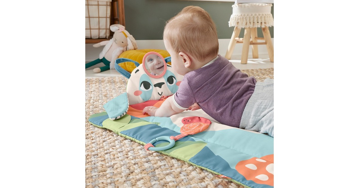 Diese große, vielseitige 3-in-1 Spielmatte für Babys kann für Spielspaß in Rücken- oder Bauchlage verwendet werden. Die Pfoten stützen das kontrastreiche Gesicht des Pandas in Rückenlage oder sichern die Spielmatte unterwegs , wenn sie zusammengerollt transportiert wird. Das Spielzeug mit Knistergeräusch und einem Spiegel lassen sich zum Spielen in Bauchlage an die Matte oder an Schleifen anbringen. Die Matte ist ohne Spielzeuge maschinenwaschbar.Art.-Nr.: 100025263