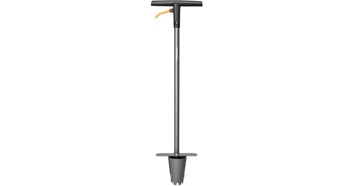 Der Ergo Blumenzwiebel-Pflanzer von Fiskars eignet sich ideal zum einfachen Pflanzen von Zwiebeln und kleinen Setzlingen. Die angenehme Länge erlaubt ein bequemes Arbeiten im Stehen. Der Pflanzer gräbt und füllt Löcher mit einer Pflanztiefe bis zu 15cm und der Griffhebel gibt die Erde über der Zwiebel frei. Während die rutschfeste Trittfläche für mehr Sicherheit sorgt, erleichtert der Grabkegel mit seinen scharfen Zähnen das Eindringen in harten Boden.Art.-Nr.: 1709398