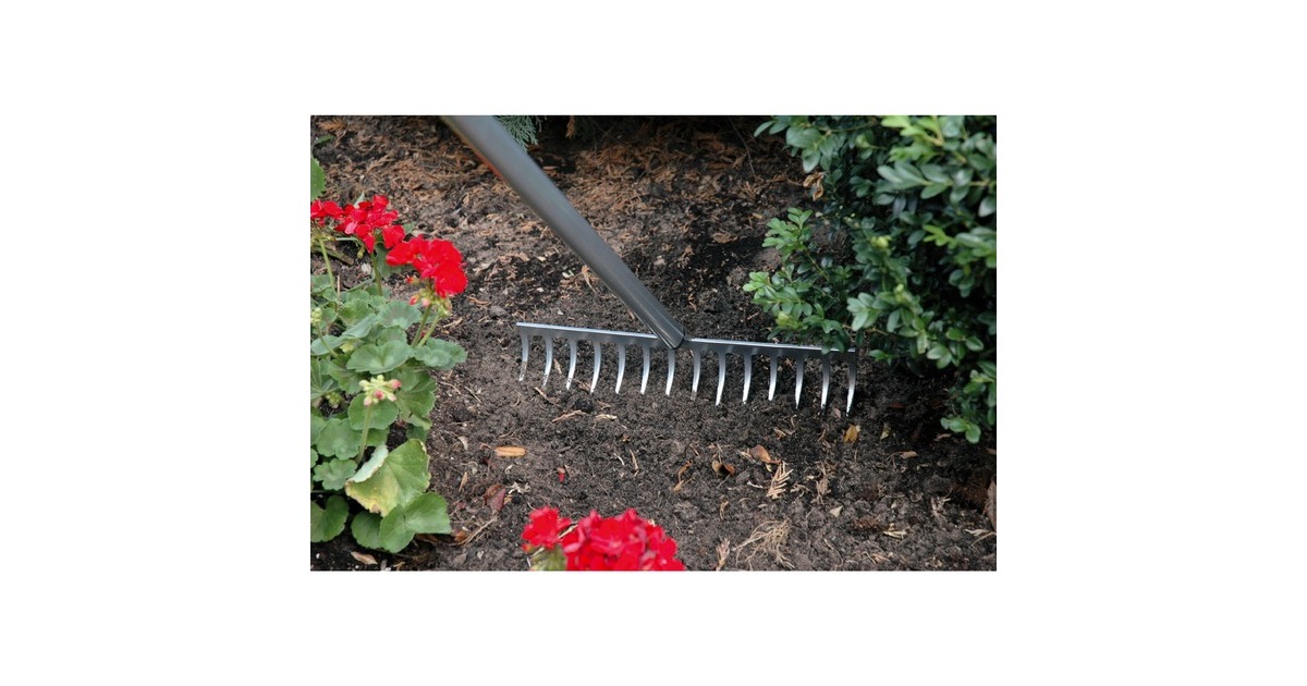 Der 36 Zentimeter breite Ergonomic Rechen von Fiskars ist optimal, um in schmalen Beeten und auf kleinen Flächen eingesetzt zu werden. Der Rechen erreicht beim Harken enge Stellen, ohne dabei Pflanzen und Stengel zu verletzen. Seine 14 Zinken aus gehärtetem Borstahl sind sehr robust. Das Material verleiht diesem Gerät seine Langlebigkeit. Das Werkzeug ist handlich, mit einem Gewicht von 660 Gramm ist es zudem sehr leicht. Es besitzt einen langen Aluminium-Stiel mit einem Überzug aus Kunststoff. Der Stiel hat darüber hinaus einen rutschfesten Griff, der dem Benutzer besonderen Komfort bietet. Am Griff-Ende befindet sich ein Aufhängeloch, welches zum Verstauen des Ergonomic Rechens gedacht ist. Art.-Nr.: 1412280