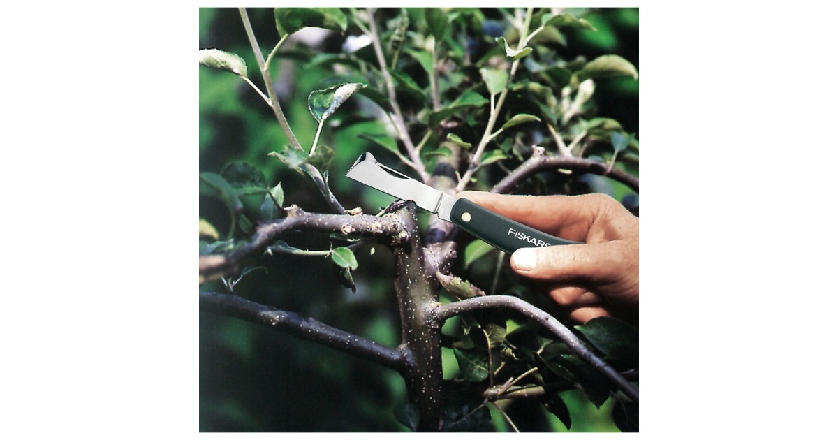 Das Okuliermesser K60 von Fiskars eignet sich für diverse Okulierarbeiten. Mit dem leichten Werkzeug lassen sich viele präzise Tätigkeiten durchführen, es eignet sich hervorragend zum Veredeln von Pflanzen. Mit ihm lassen sich zum Beispiel Obstbäume oder Rosen sehr gut bearbeiten, Stöcke anspitzen, und auch zum Abschälen der Rinde lässt sich das Werkzeug optimal verwenden. Die scharfe, gerade Klinge hat eine einseitig geschliffene Schneide und besteht aus hochwertigem, poliertem Stahl. Dieses Material verleiht der Klinge ihre Langlebigkeit und darüber hinaus die Korrosionsbeständigkeit. Außerdem hat der Stahl eine Rockwell-Härte von 58 HRC. Das Messer hat eine Gesamtlänge von 17 Zentimetern und ist zusammenklappbar. Dadurch passt es in jede Hosen- oder Jackentasche. Mit dieser Länge ist es das kleinste der Messer-Modelle. Der Löser befindet sich am Klingenrücken. Das Fiskars Okuliermesser K60 wiegt nur 50 Gramm. Das Siegel "Sicherheit Geprüft" bestätigt, dass das Messer den Europäischen Sicherheitsnormen entspricht.Art.-Nr.: 1410868